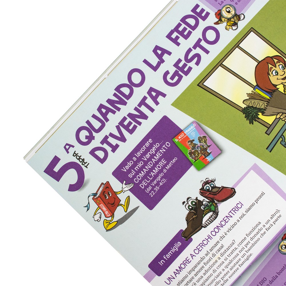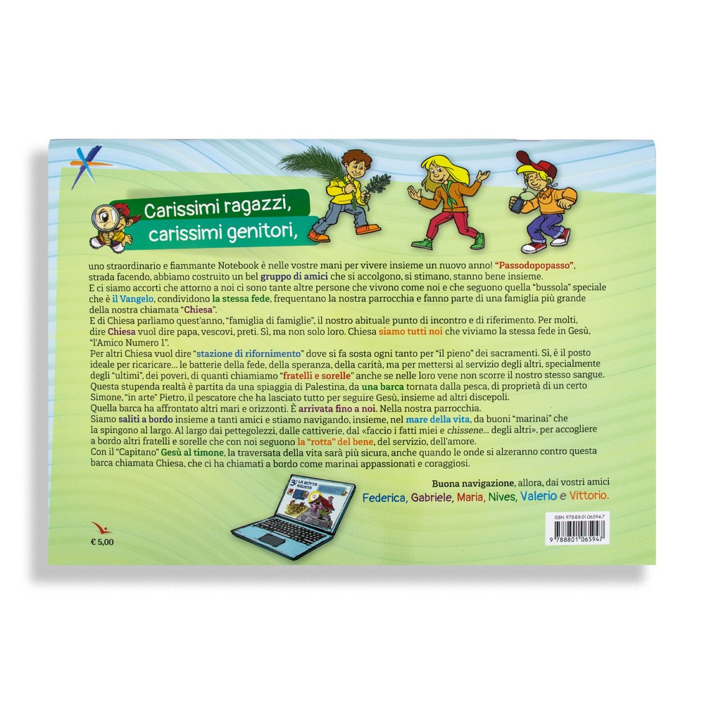 Quest'anno questo sussidio contiene meno parole e più spazio libero, per dare modo ai ragazzi di scrivere ciò che hanno vissuto e provato; riporta i riferimenti alla Parola, senza i testi. Un invito ad aprire il Vangelo e a lavorare con il metodo a quattro colori.