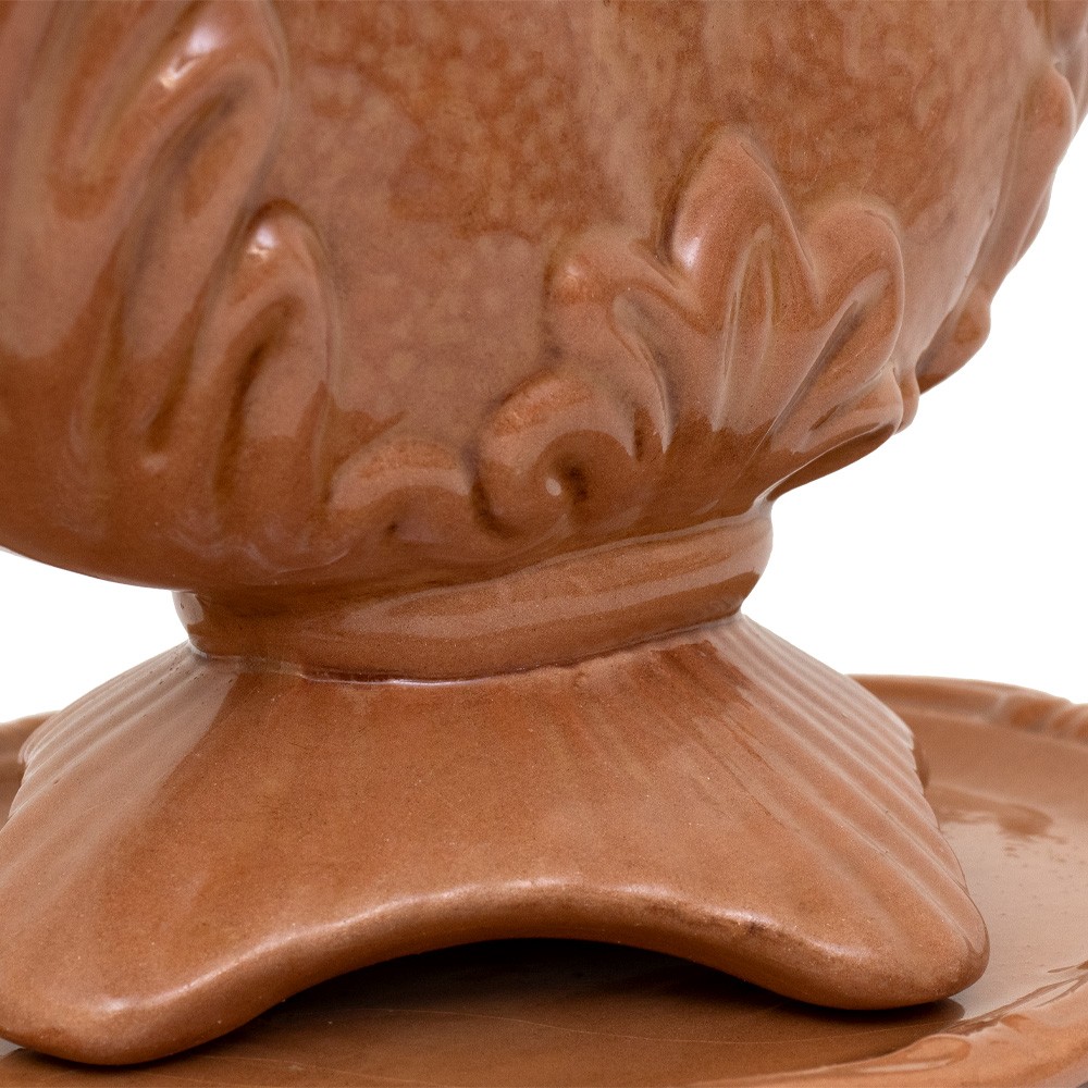Realizzata in ceramica vetrificata, completa di piatto, gigler e stoppini.