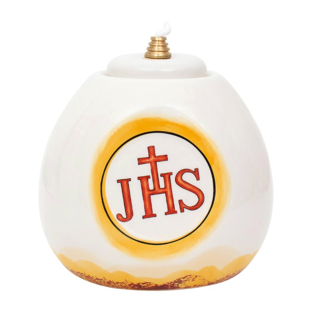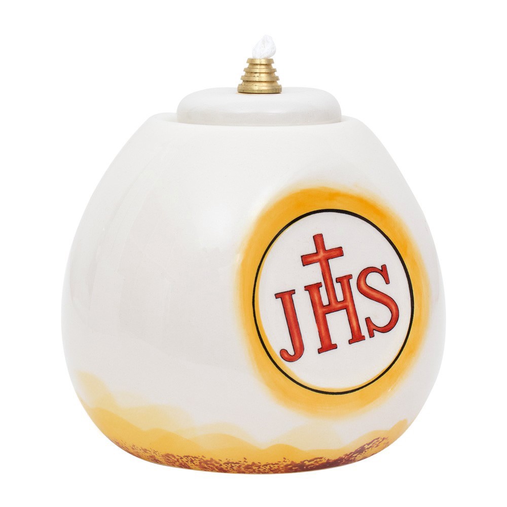 Questa lucerna ad uso liturgico è fornita sia di stoppino che gigler dorato.