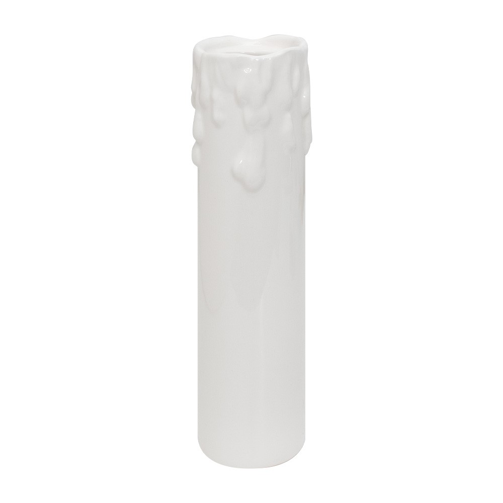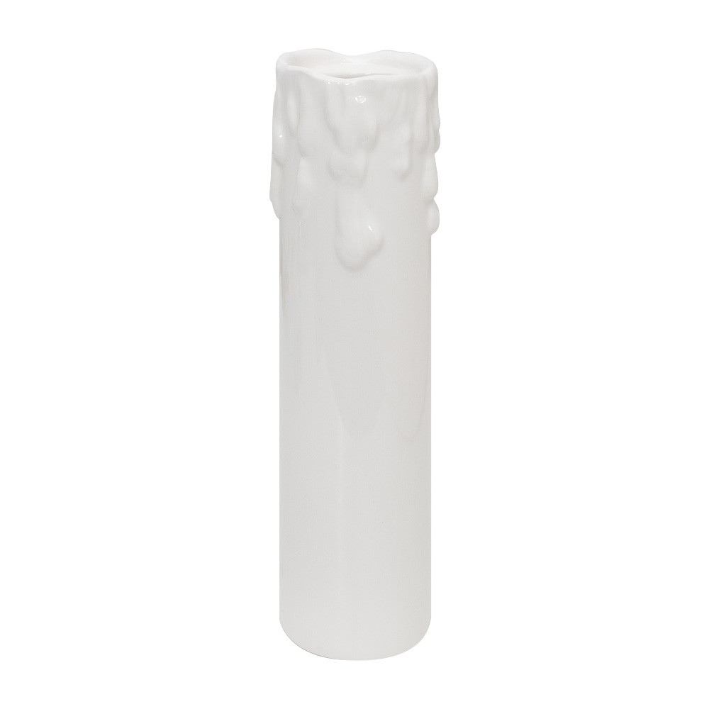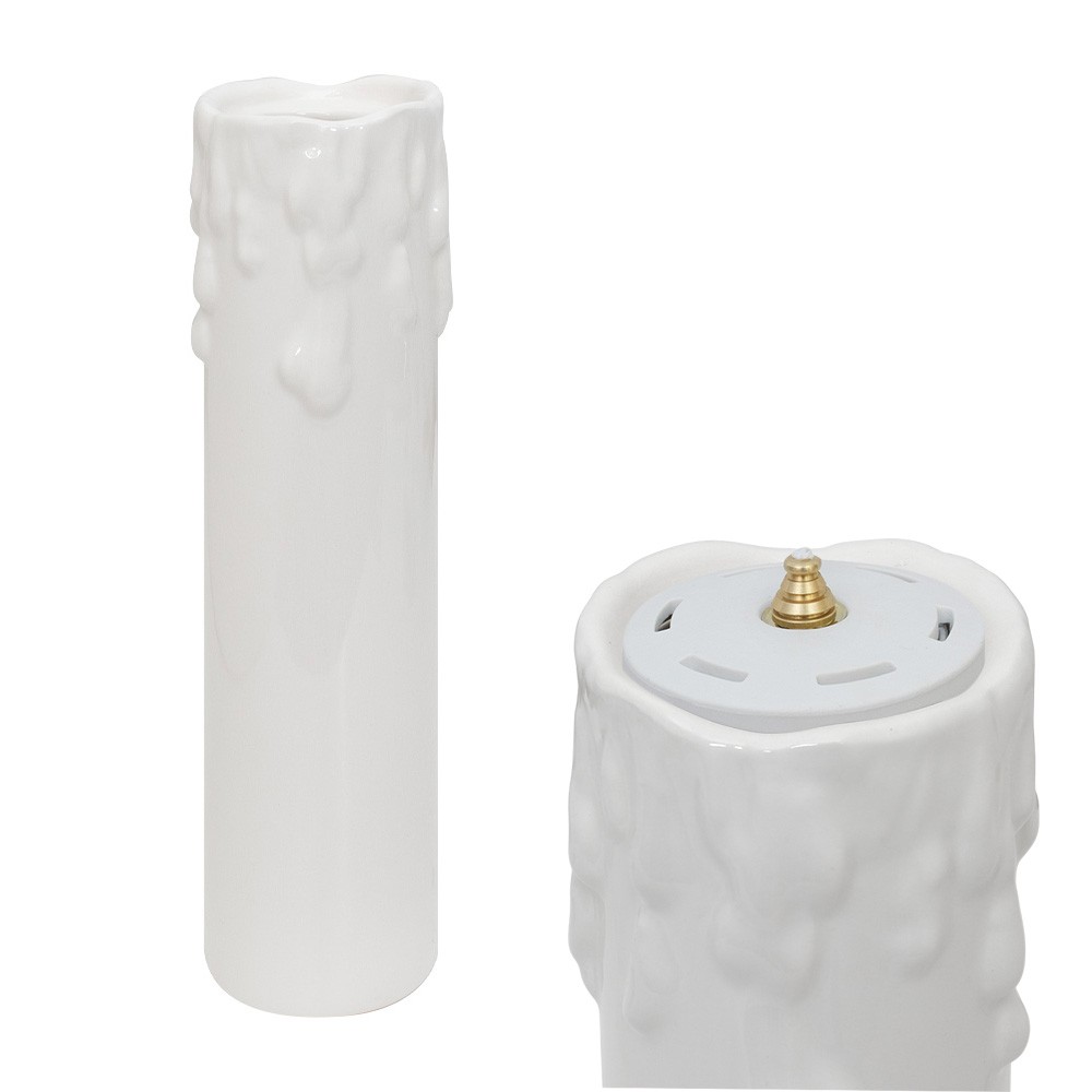 Finta candela a cera liquida in ceramica dipinta di colore bianco, alta 23 cm adatta per una cartuccia con diametro massimo 5 cm.