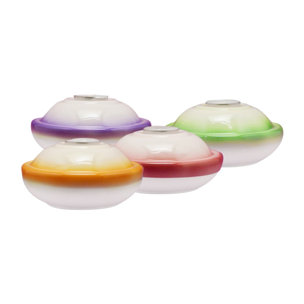Lampada tonda portalumino realizzata in ceramica con diverse colorazioni adatte per ogni periodo liturgico. Completa di lumino in cera.
