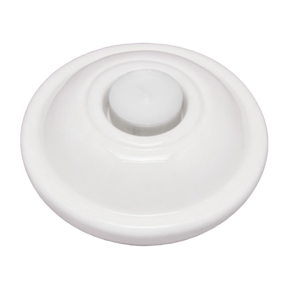 Lampada tonda portalumino realizzata in ceramica bianca. Completa di lumino in cera. Diametro 13 cm. Prodotto made in Italy.
