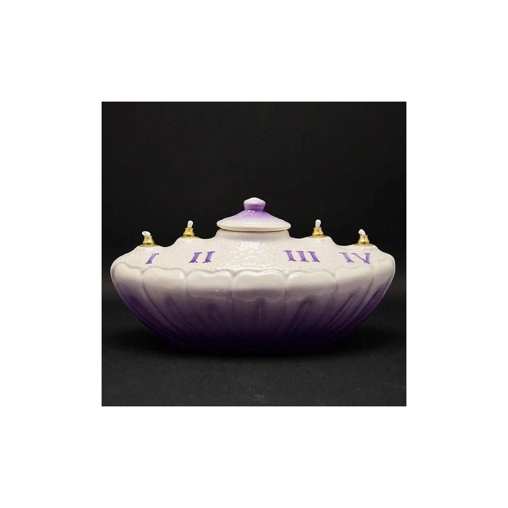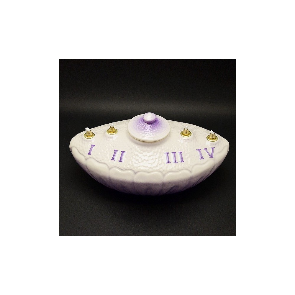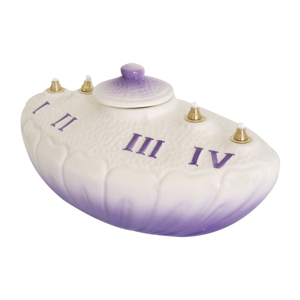 Lampada dell'Avvento a cera liquida con 4 fiamme. Realizzata in ceramica decorata. Completa di KIT in ottone e stoppini. La Lampada è lunga 27 cm. Prodotto made in Italy.