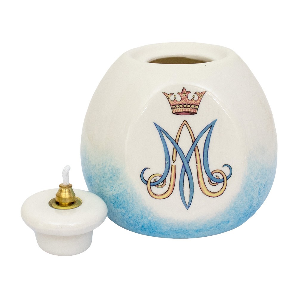 Lampada con decoro Mariano a cera liquida realizzata in fotoceramica.