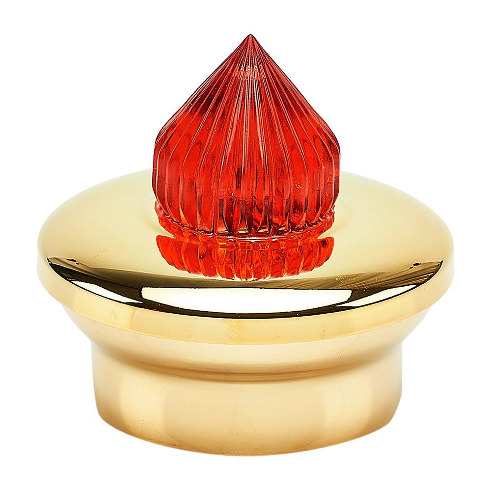 Lumino a batteria per il Santissimo Sacramento. La base è in ottone dorato e il lumino è in plastica rosso, con luce lampeggiante. Produione italiana.