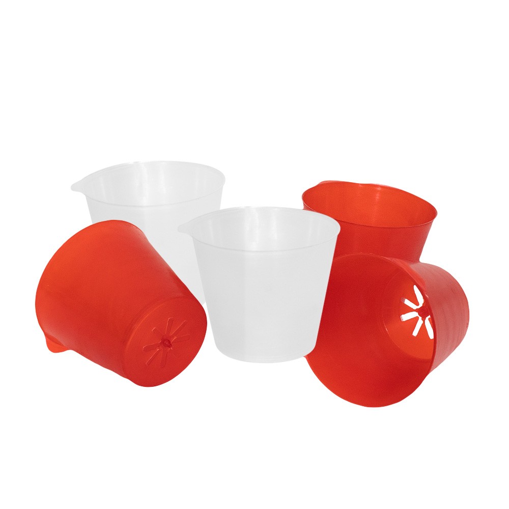 Flambeaux per candele a forma di bicchiere in plastica colorata.