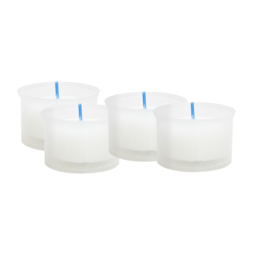 La confezione comprende quattro lumini in cera bianca confezionati in contenitori di plastica, disponibile sia rosso che bianco.