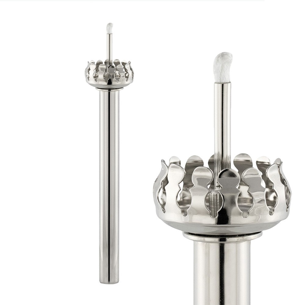 Ricambio cartuccia in metallo argentato, ideale per torcia processione a cera liquida. Alta circa 19 cm.