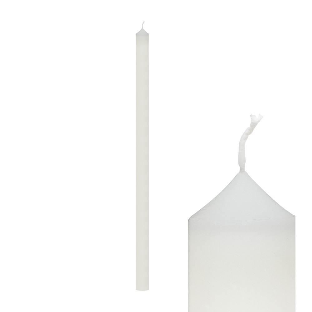 Candela liturgica alta circa 1 metro, realizzata in cera bianca di ottima qualità.