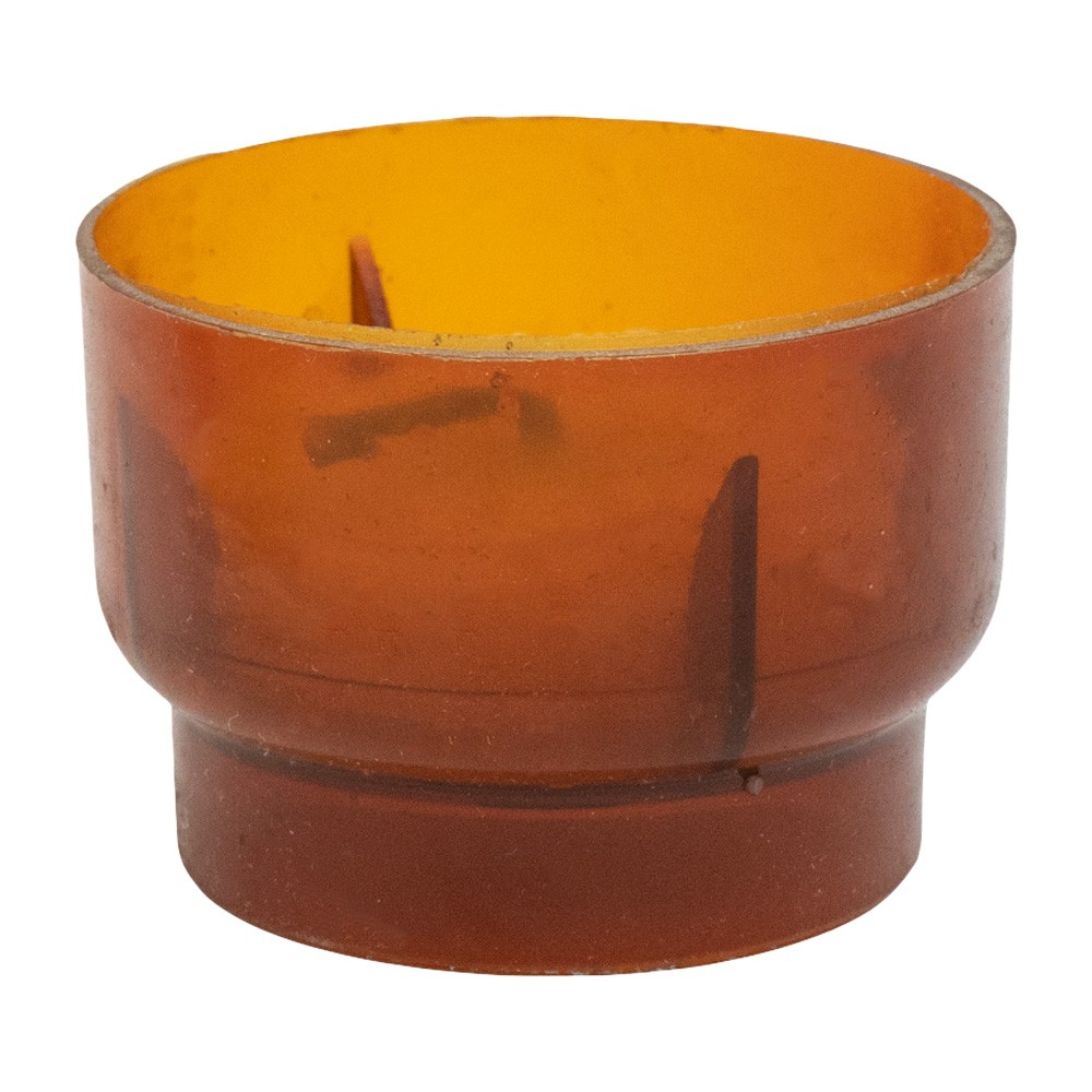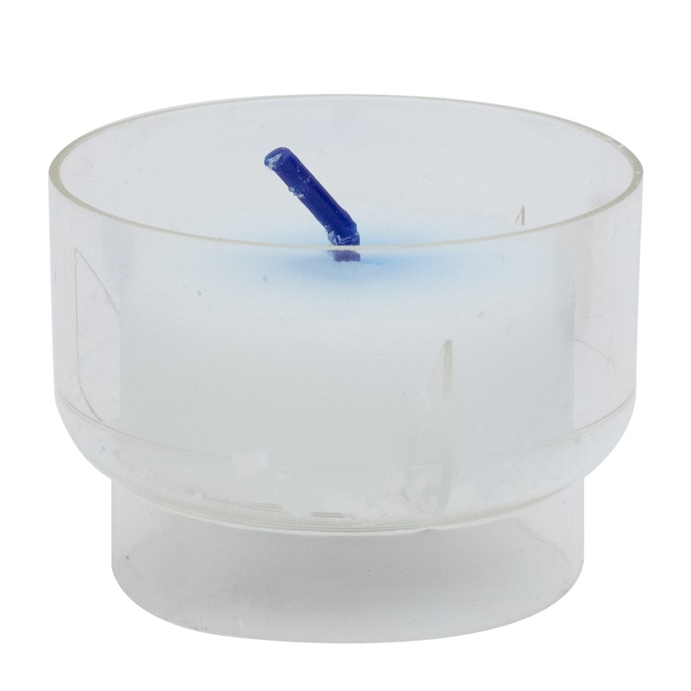 Lumino a calicetto in cera bianca con contenitore in plastica.