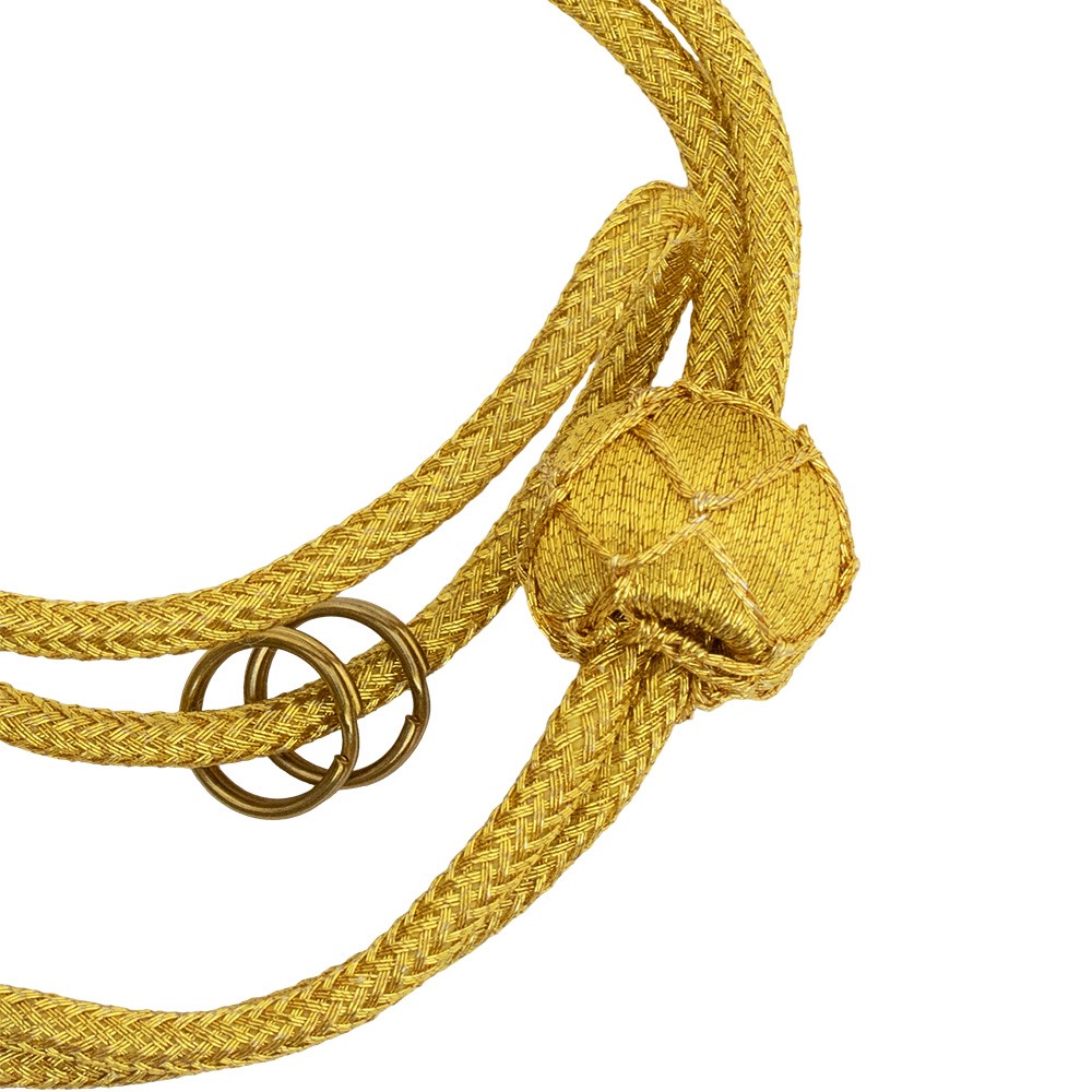 Cordoniera oro per stola sacerdotale, completa di un nodo, un fiocco con legno e frangia rebour 1/2 fino e due gancini tondi in metallo.