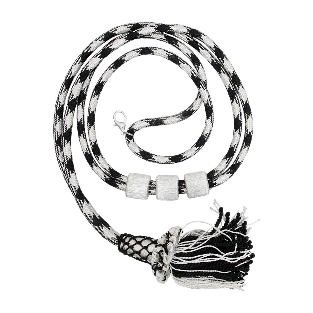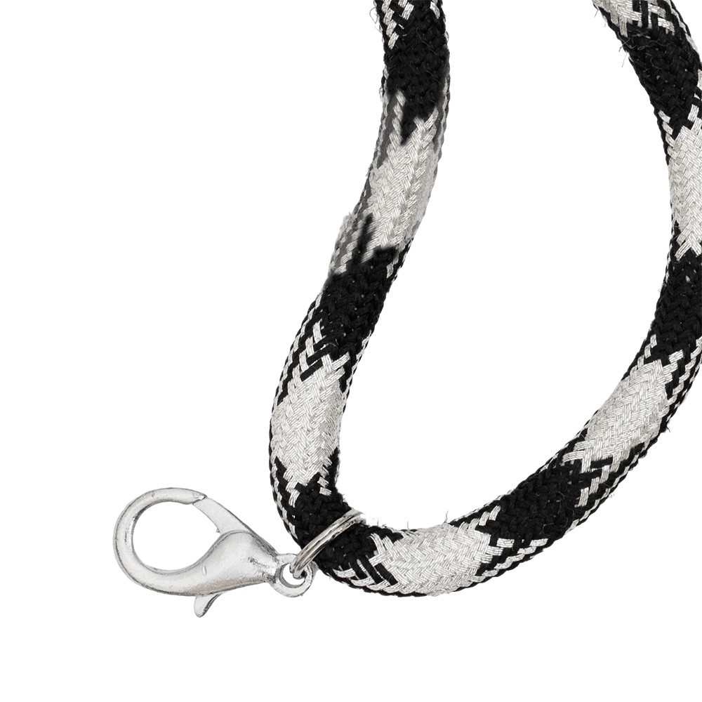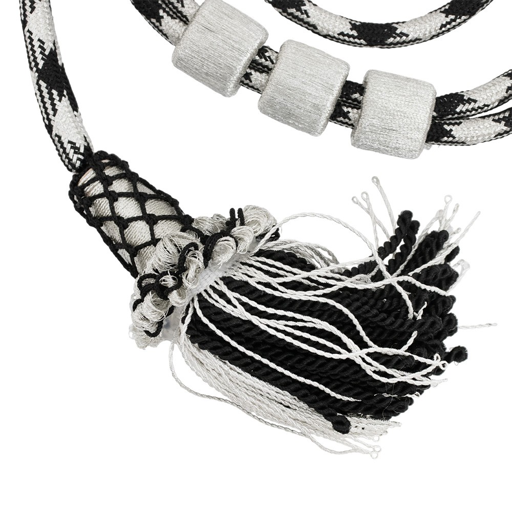 Cordoniera bianca e nera per croce pettorale in tessuto rayon, completo di 3 passanti e moschettone.