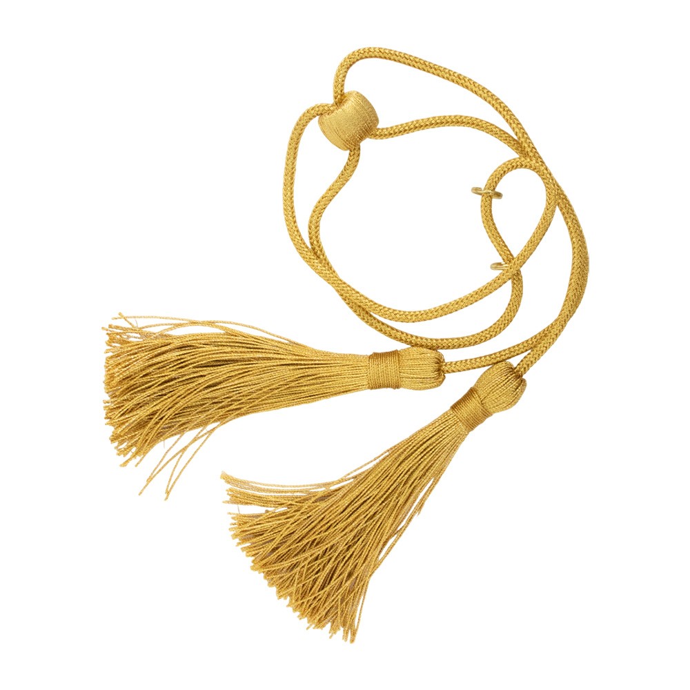Cordoniera oro per stola liturgica completa di due fiocchi con anelli in metallo oro.