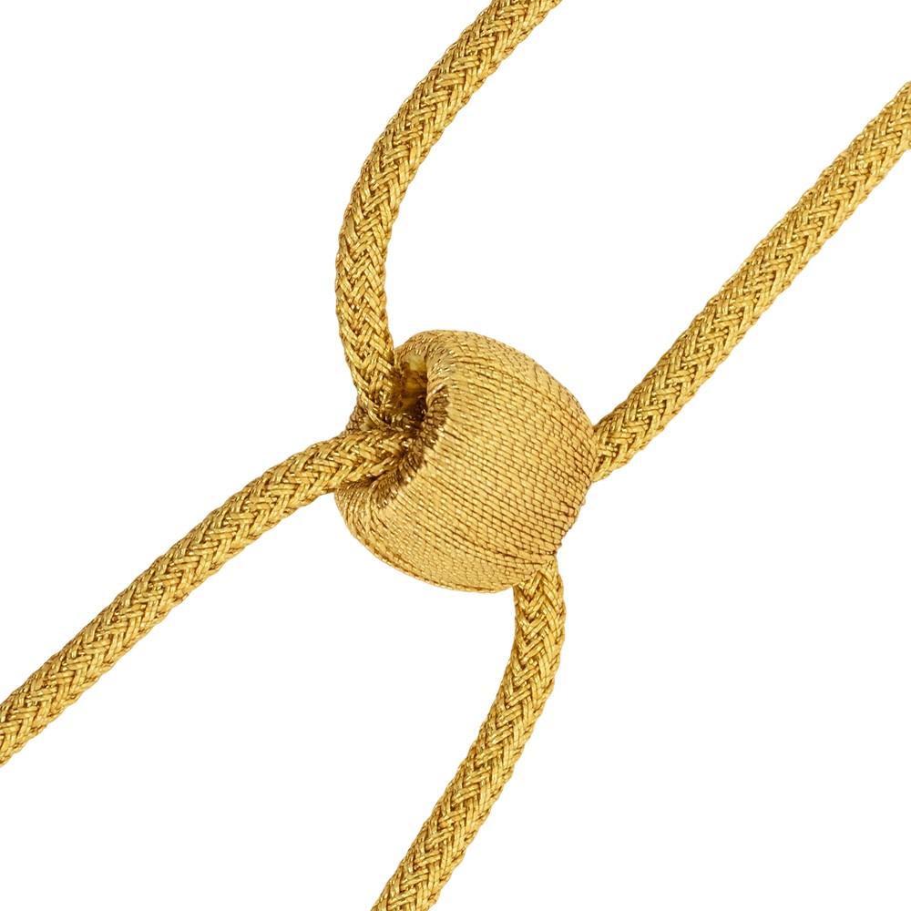 La cordoniera è confezionata in filato oro lucido.
