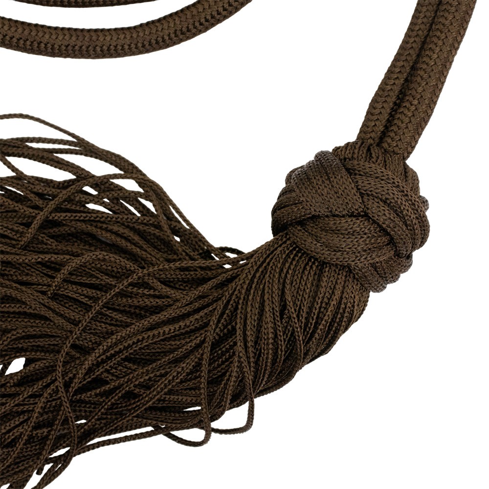 Cordone per croce pettorale di colore marrone, realizzata con fiocco salomone, due passanti e gancio in metallo color oro.