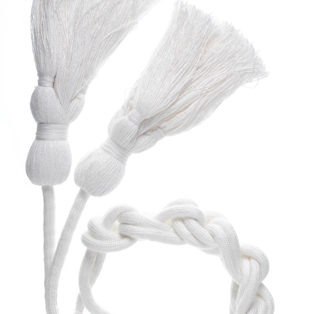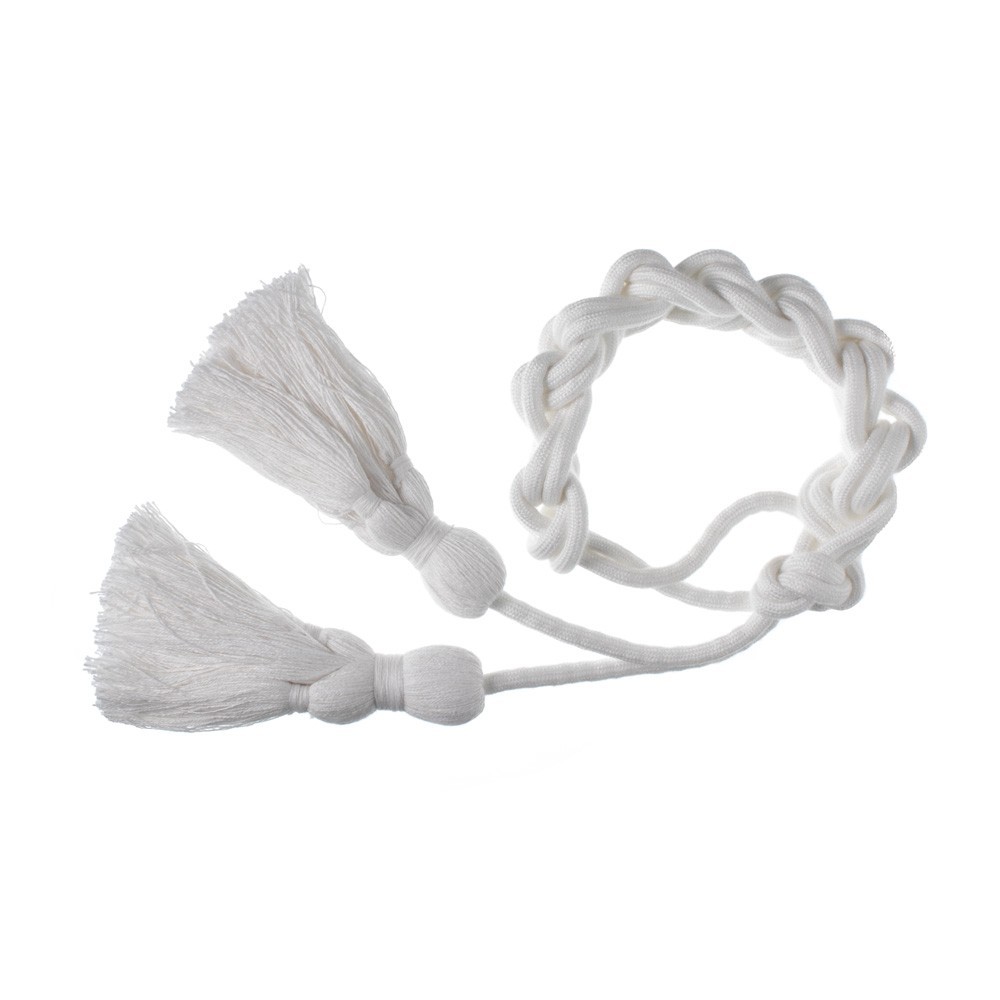 Cingolo in cotone di colore bianco per tunica Prima Comunione. Questo cingolo è confezionato con fiocco tondo e frangia con quattro nodini. Made in Italy.