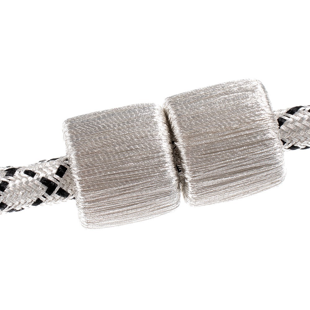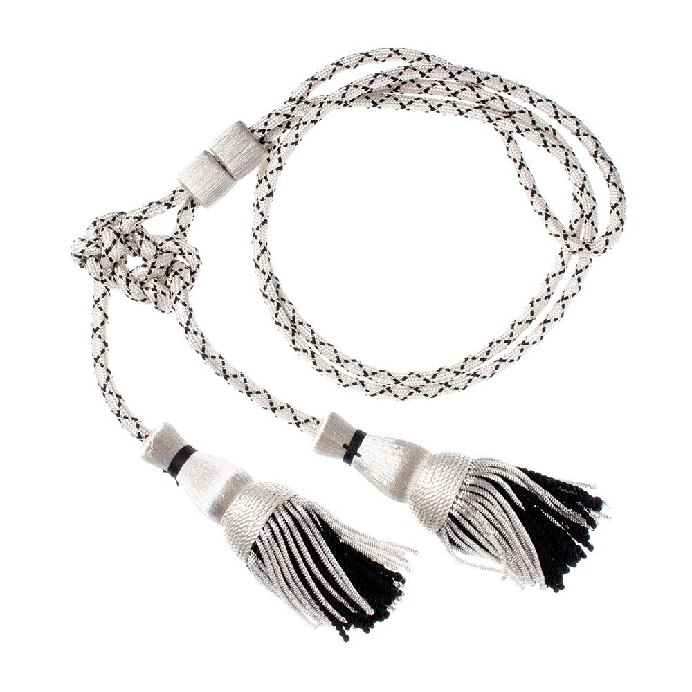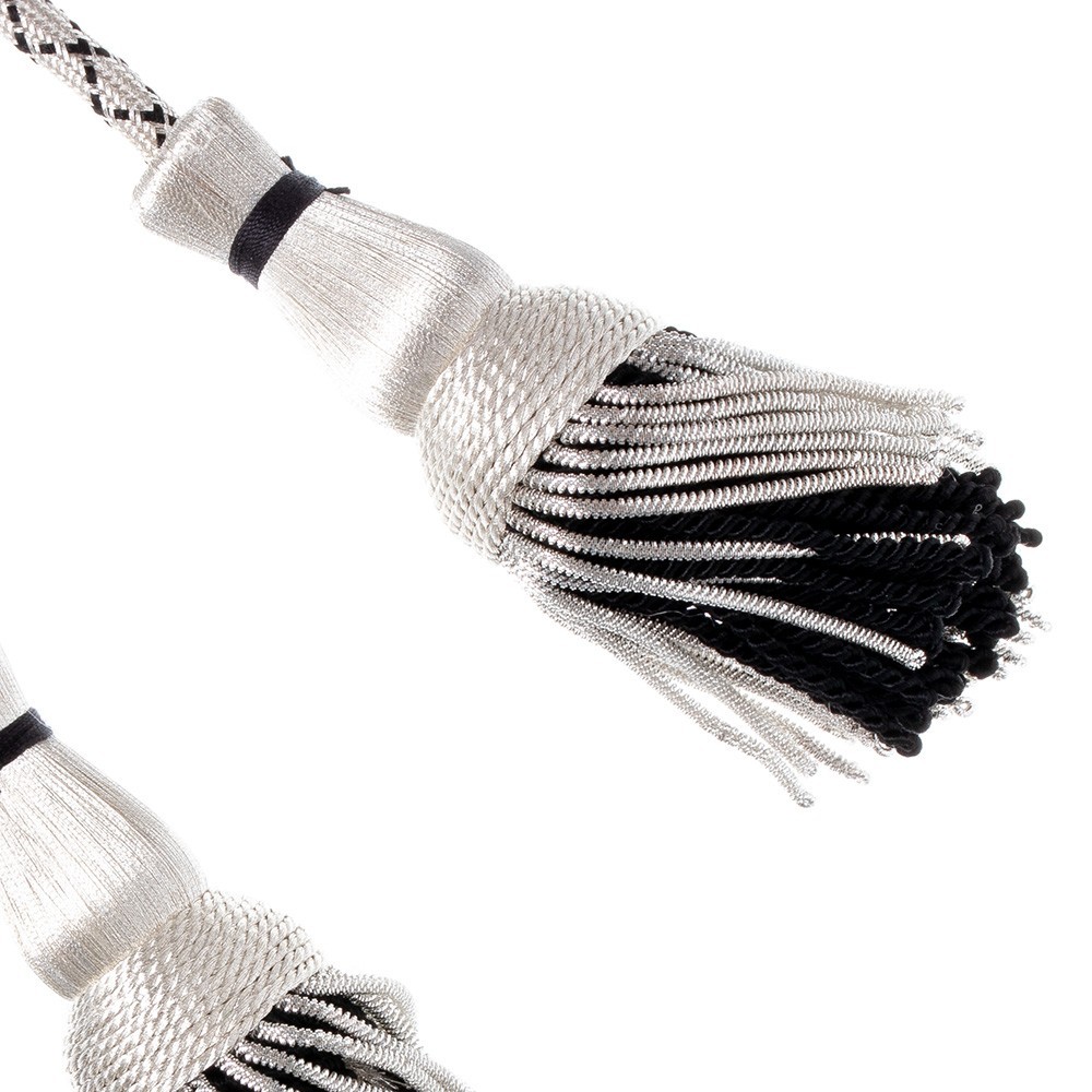 Coppia di Cordoniere di colore nero e argento per la toga di avvocato semplice, confezionata in tessuto rayon lamè.
