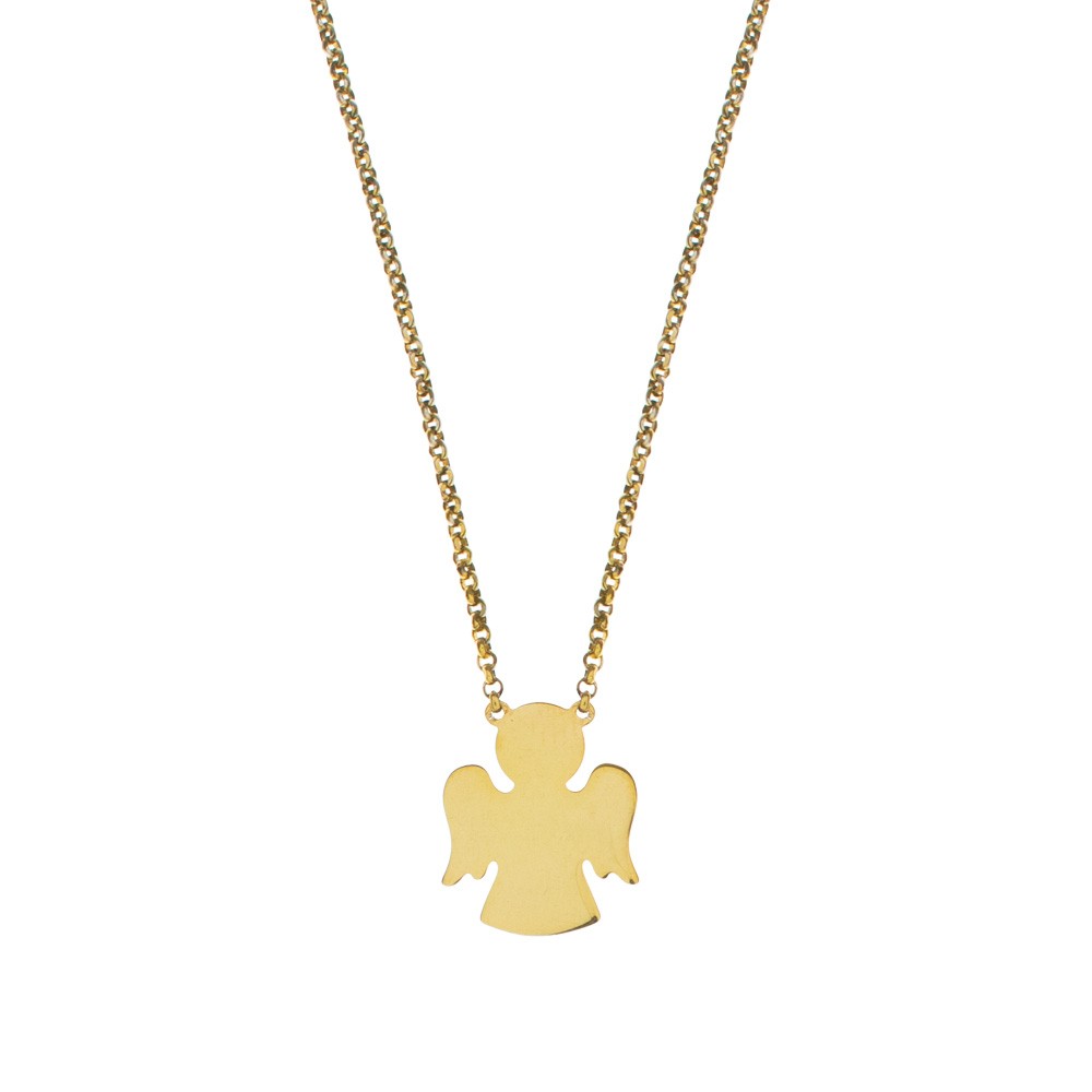 Collana in argento finitura oro Collezione Amen con pendente angelo liscio.