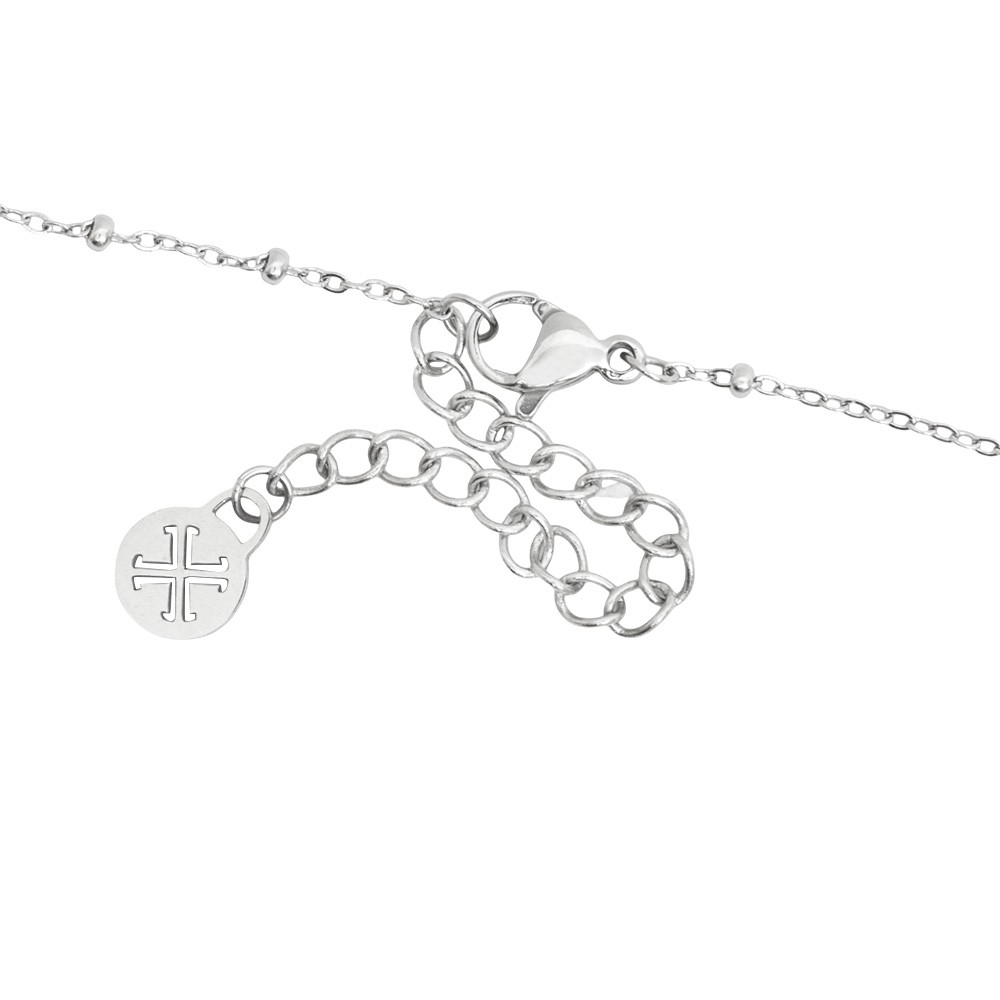 Questa collana si presenta con catena sottile e regolabile, misura 44 cm circa con estensione di 5 cm circa, arricchita con pendente croce e chiusura a moschettone.