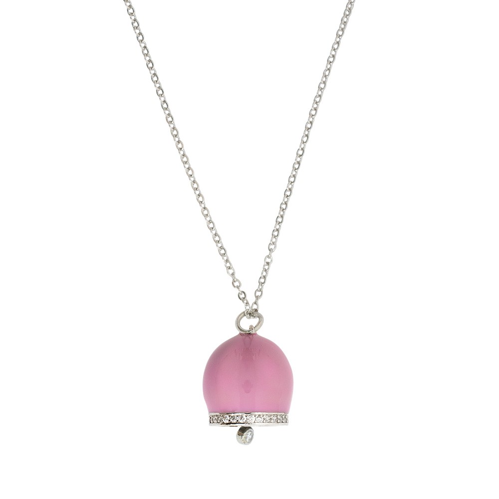 Elegante gioiello con ciondolo a forma di campanella in acciaio smaltata e zirconi. Confezione regalo inclusa.