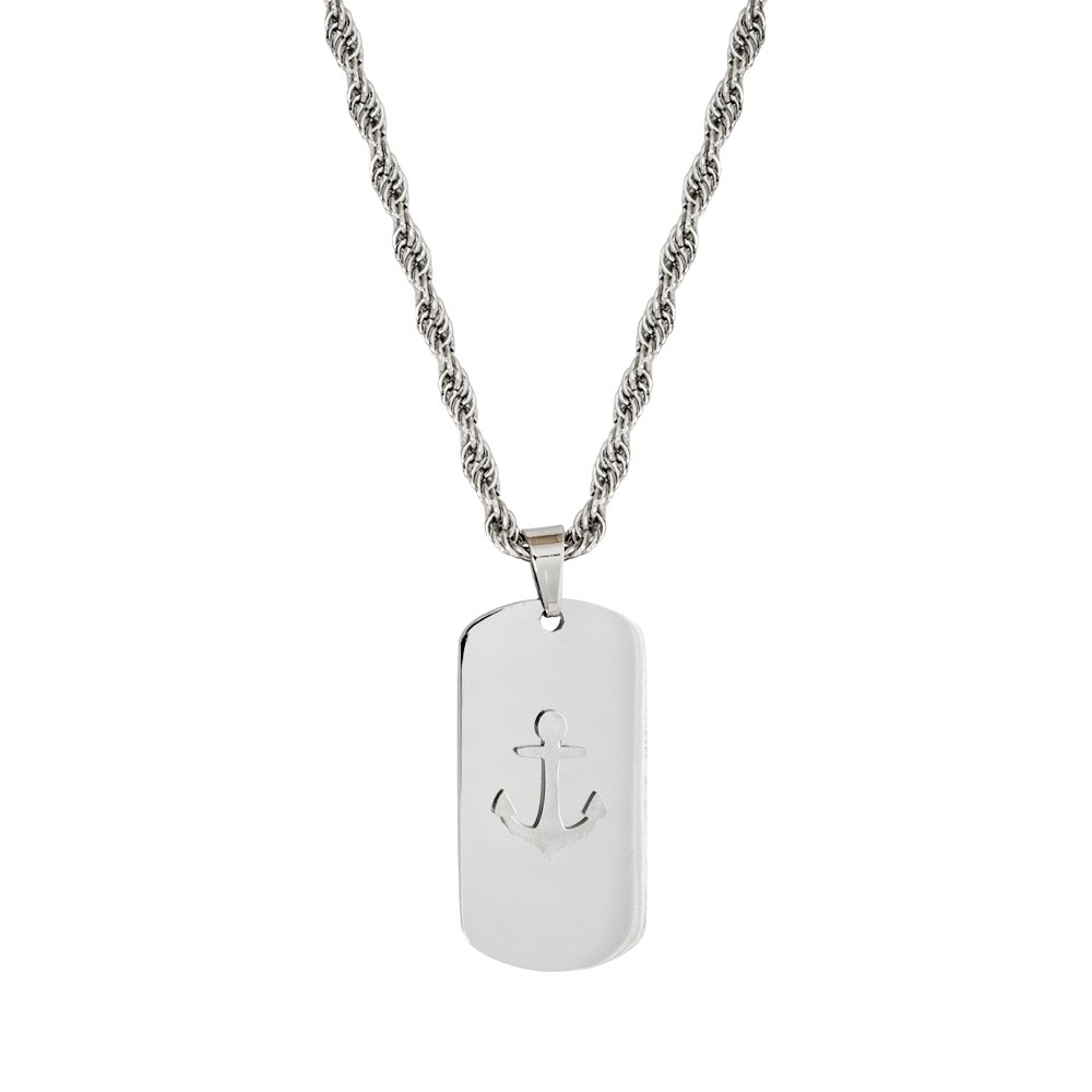 Realizzata in resistente acciaio 316L, la collana custodisce un microchip con tecnologia Joylocker®, progettato per conservare i tuoi momenti più preziosi. È composta da una catena regolabile, lunga circa 50 cm + 5 cm, e da un pendente piatto a forma di targhetta con ancora in rilievo, con impronta e smalto nero sul retro. La chiusura è a moschettone.