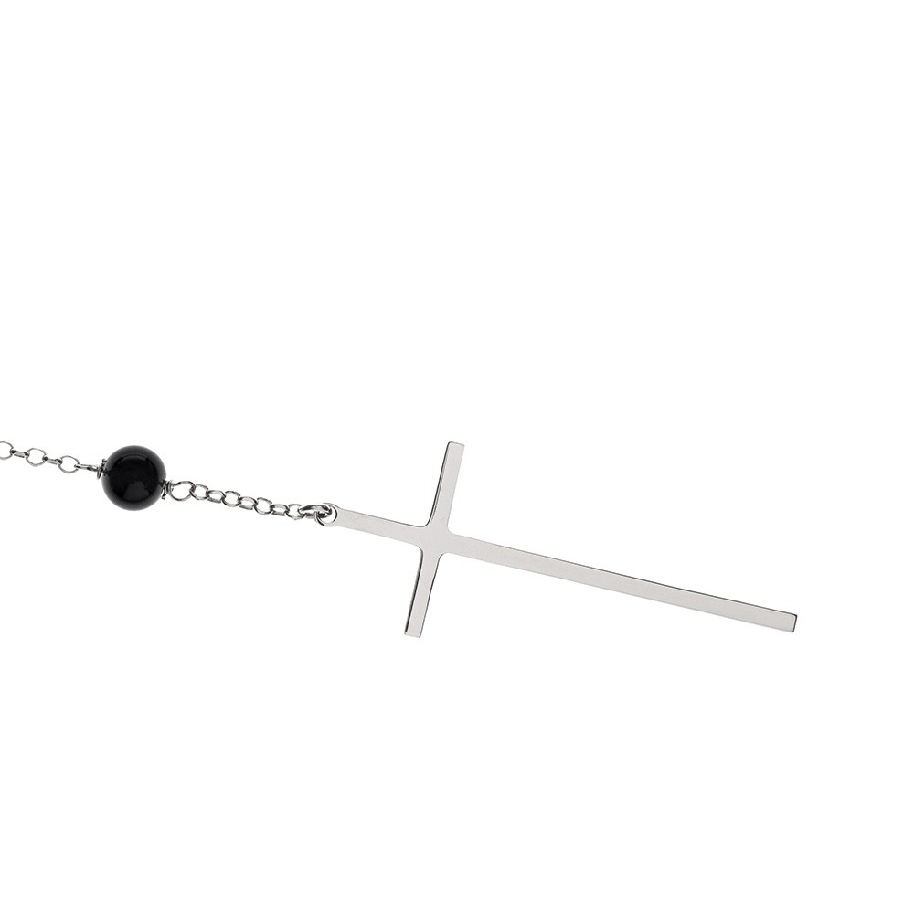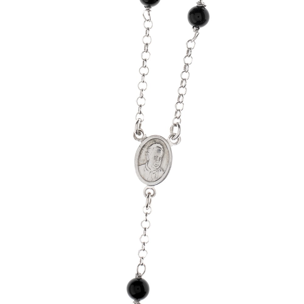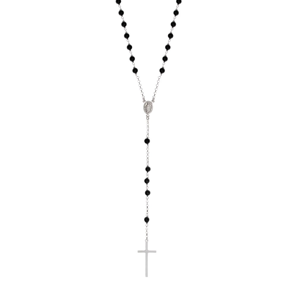Rosario da collo croce Charm e medaglietta in argento 925 rodiato - Collezione Amen -.