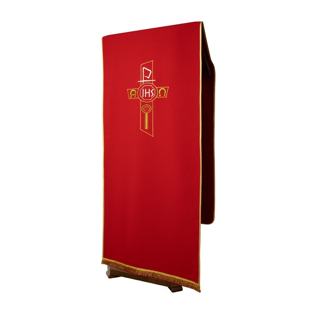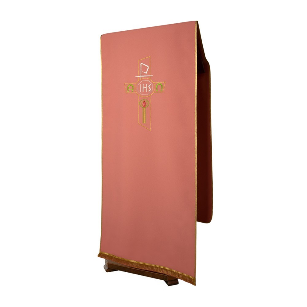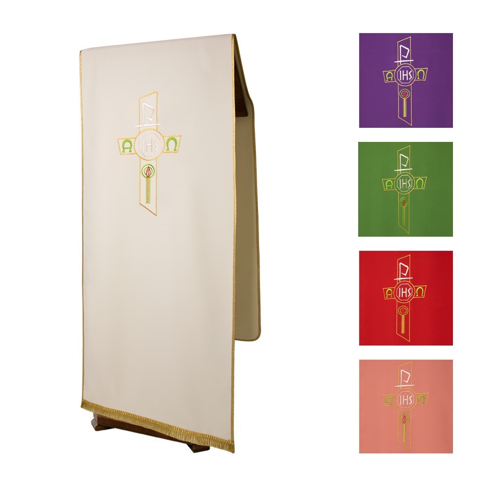 Coprileggio liturgico con ricamo croce con spighe e fiamme, misura 250x50 cm.