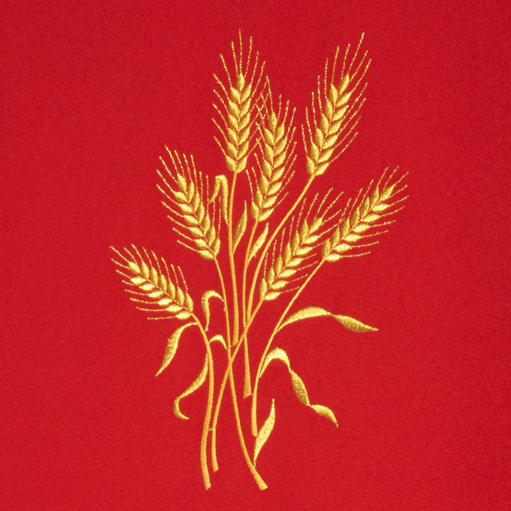 Coprileggio liturgico con ricamo uva e spighe di grano.