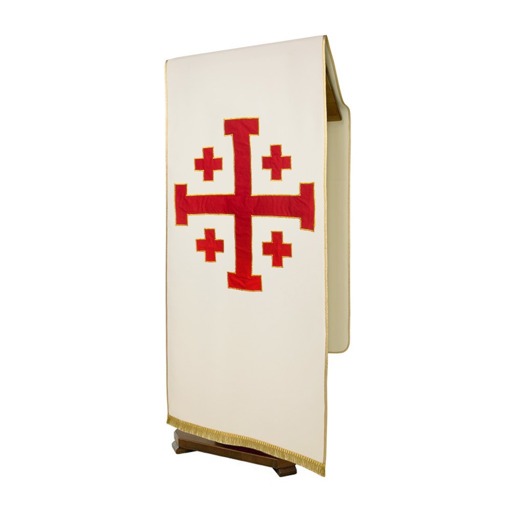 Coprileggio liturgico avorio con croce di Gerusalemme ricamata. leggera tela 100% poliestere.