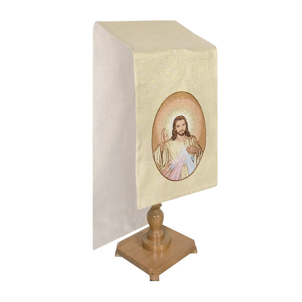 Questo copri ambone è in tessuto misto cotone, poliestere e lurex, ideale per intronizzare la Parola di Dio.