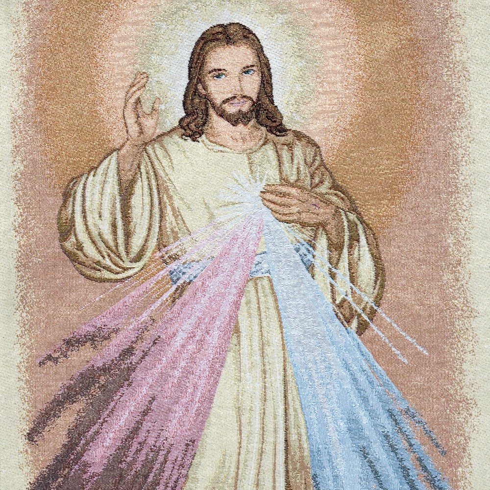 Coprileggio con immagine tessuto su tessuto del Gesù della Divina Misericordia che parlò a Santa Faustina.