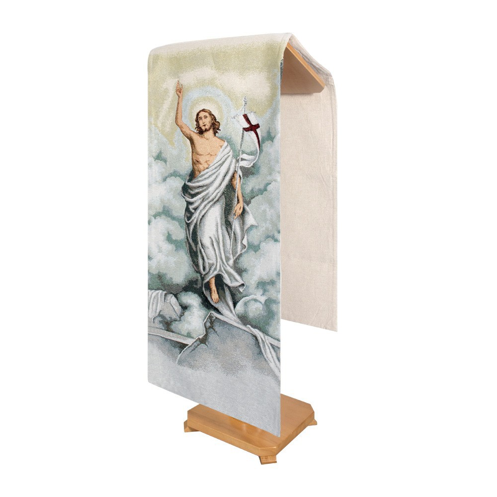 Coprileggio Resurrezione ricamo a telaio su fondo avorio.