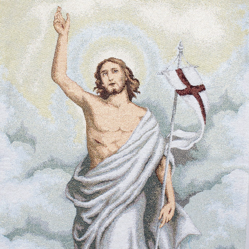 Copriambone decorato con l'immagine di Gesù Risorto.