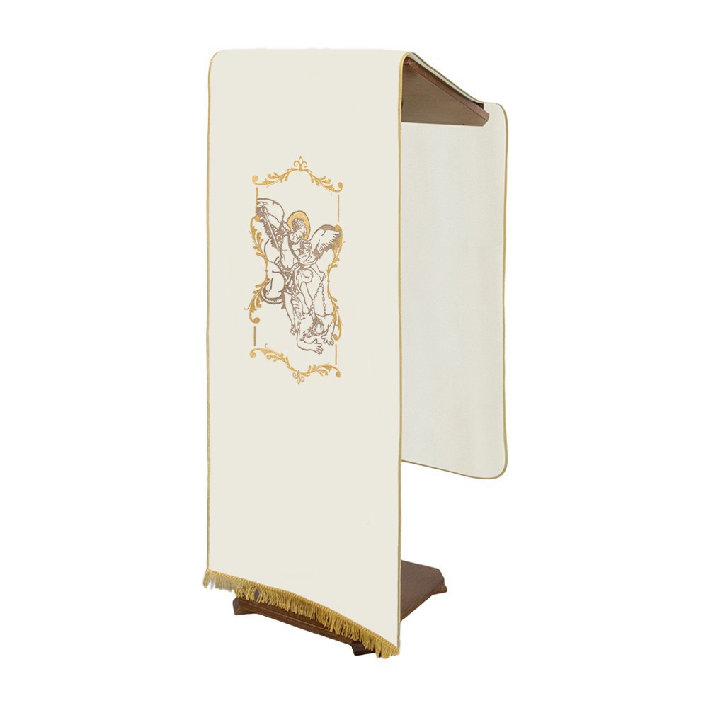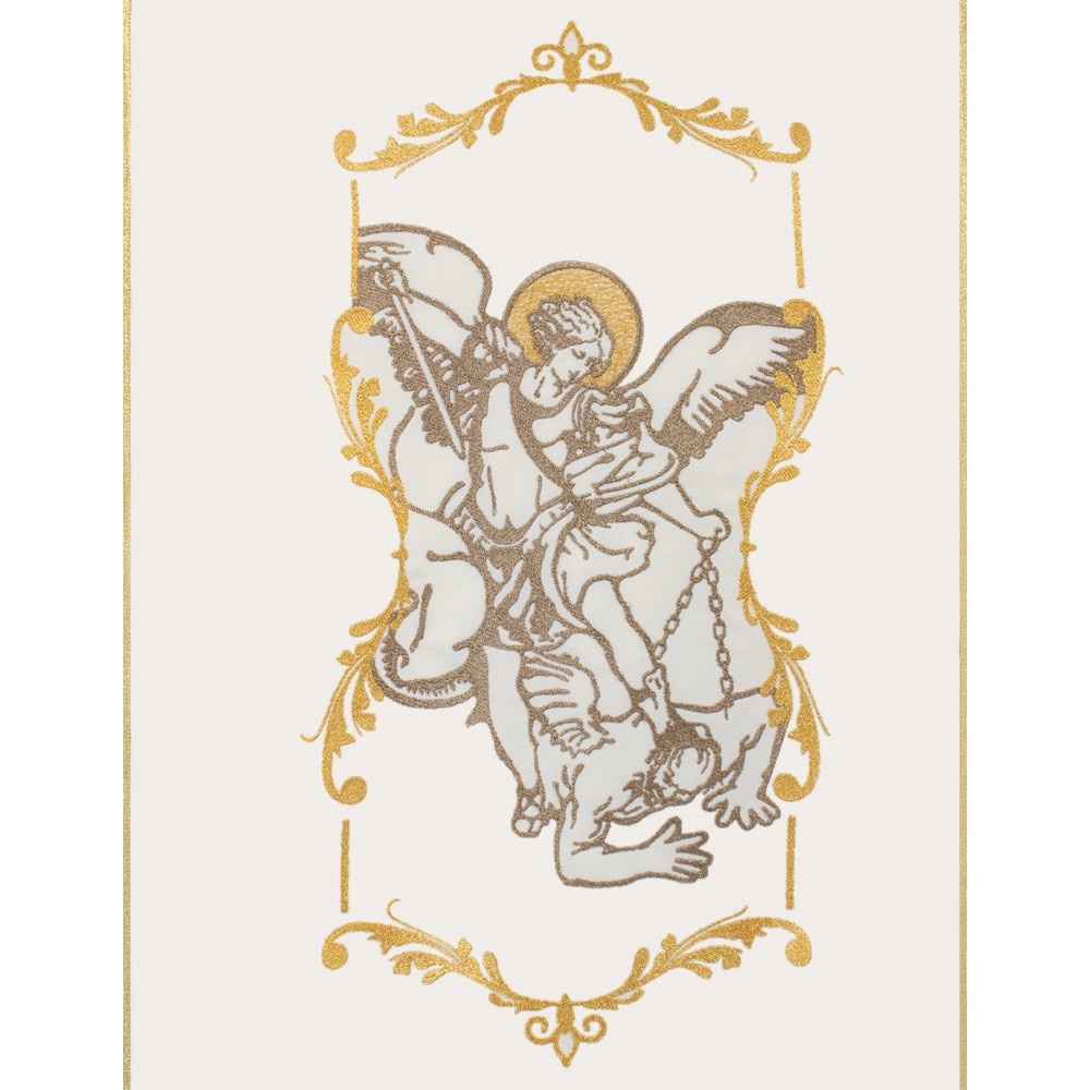 Coprileggio liturgico con immagine ricamata di San Michele Arcangelo.