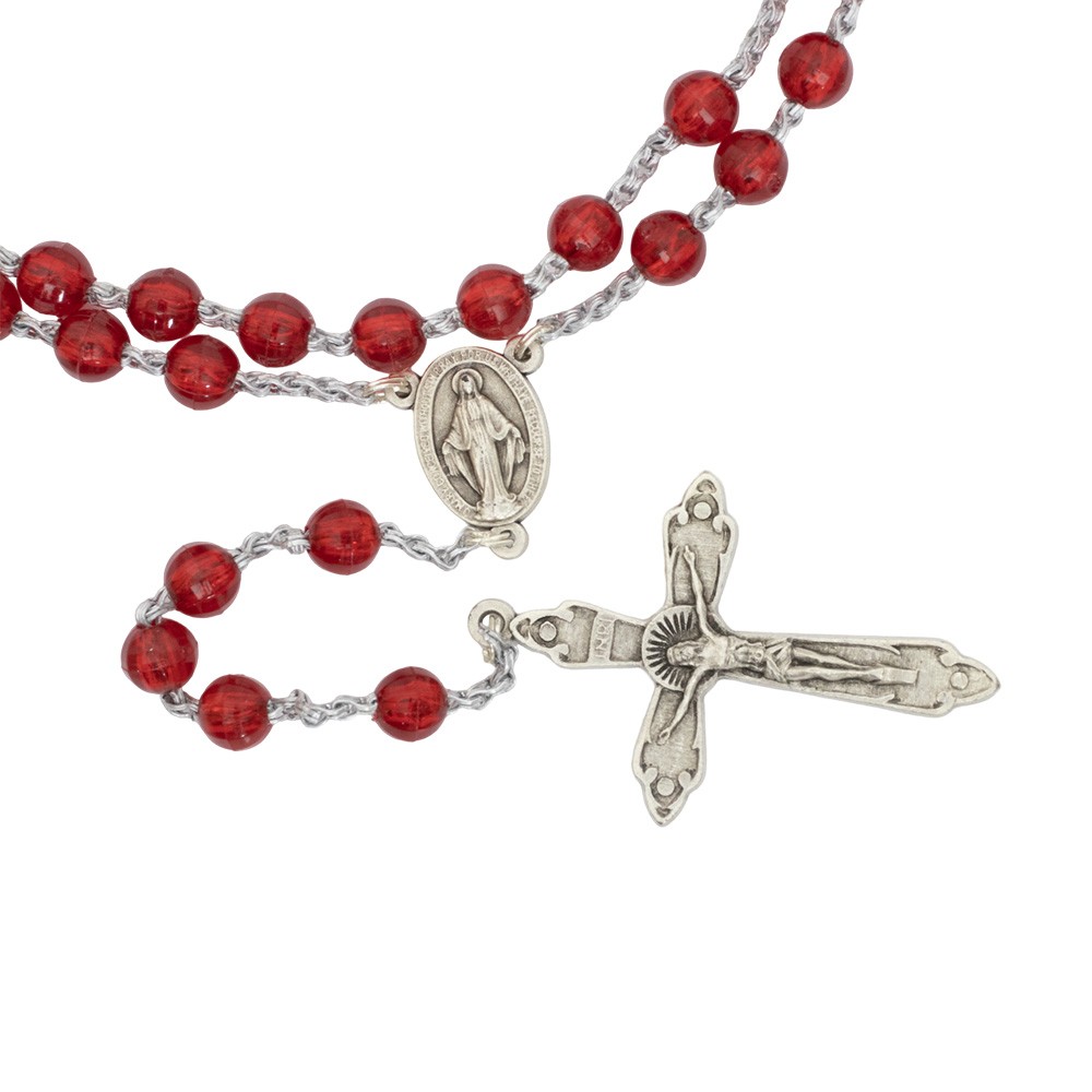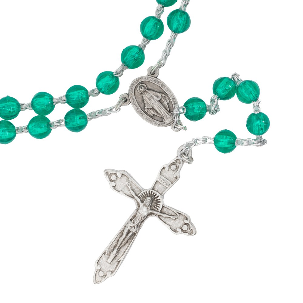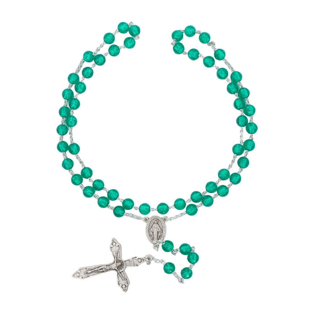 Rosario economico con grani in plastica disponibile in diverse colorazioni.