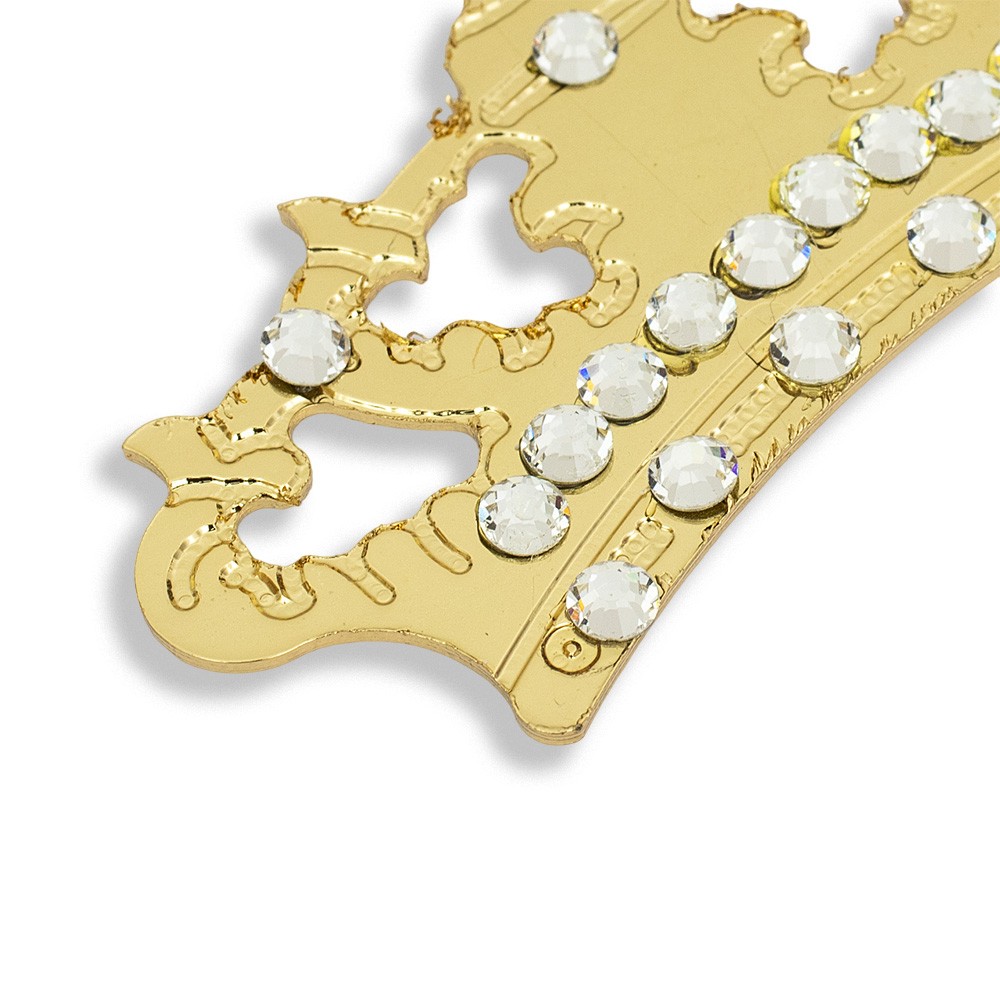 Piccola corona piatta per statue, realizzata in ottone con finitura dorata e arricchita con strass in rilievo.