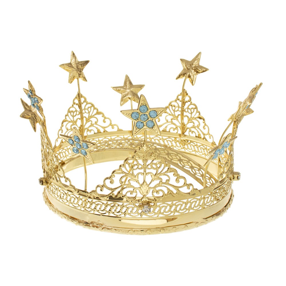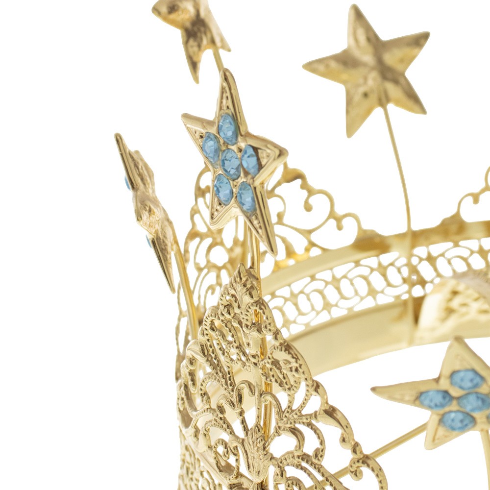 La coroncina è impreziosita da stelle e pietre colorate sul celeste chiaro, il diametro interno misura 14 cm.