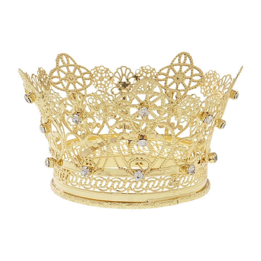 Coroncina in ottone filigranato e strass colorati.