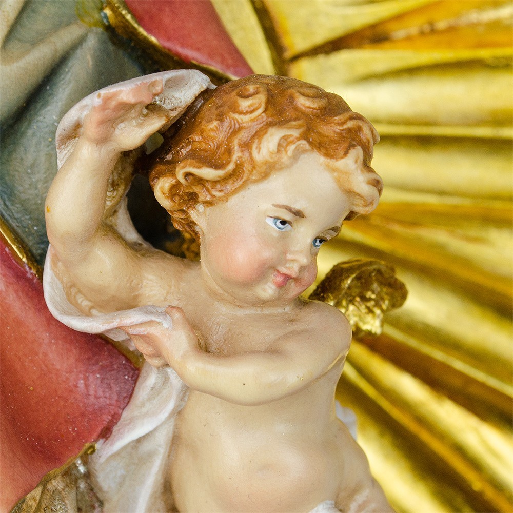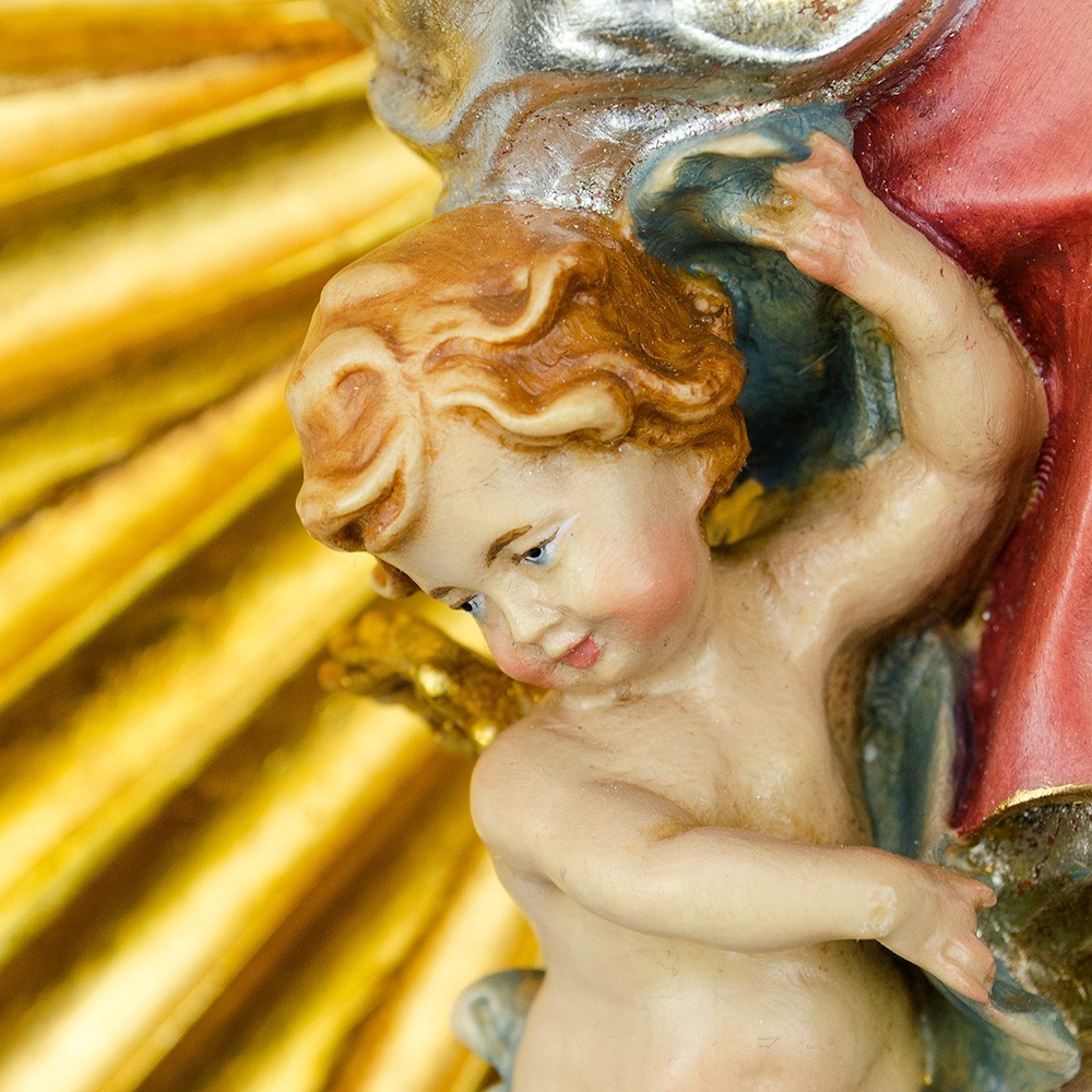 Questa particolare opera è realizzata da un'azienda italiana della Val Gardena, con grande esperienza in sculture sacre. Articolo di alta qualità, curato e rifinito nei minimi particolari.
