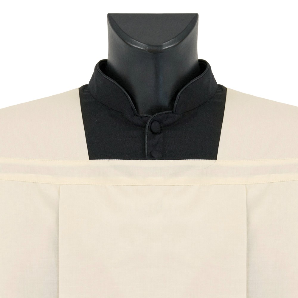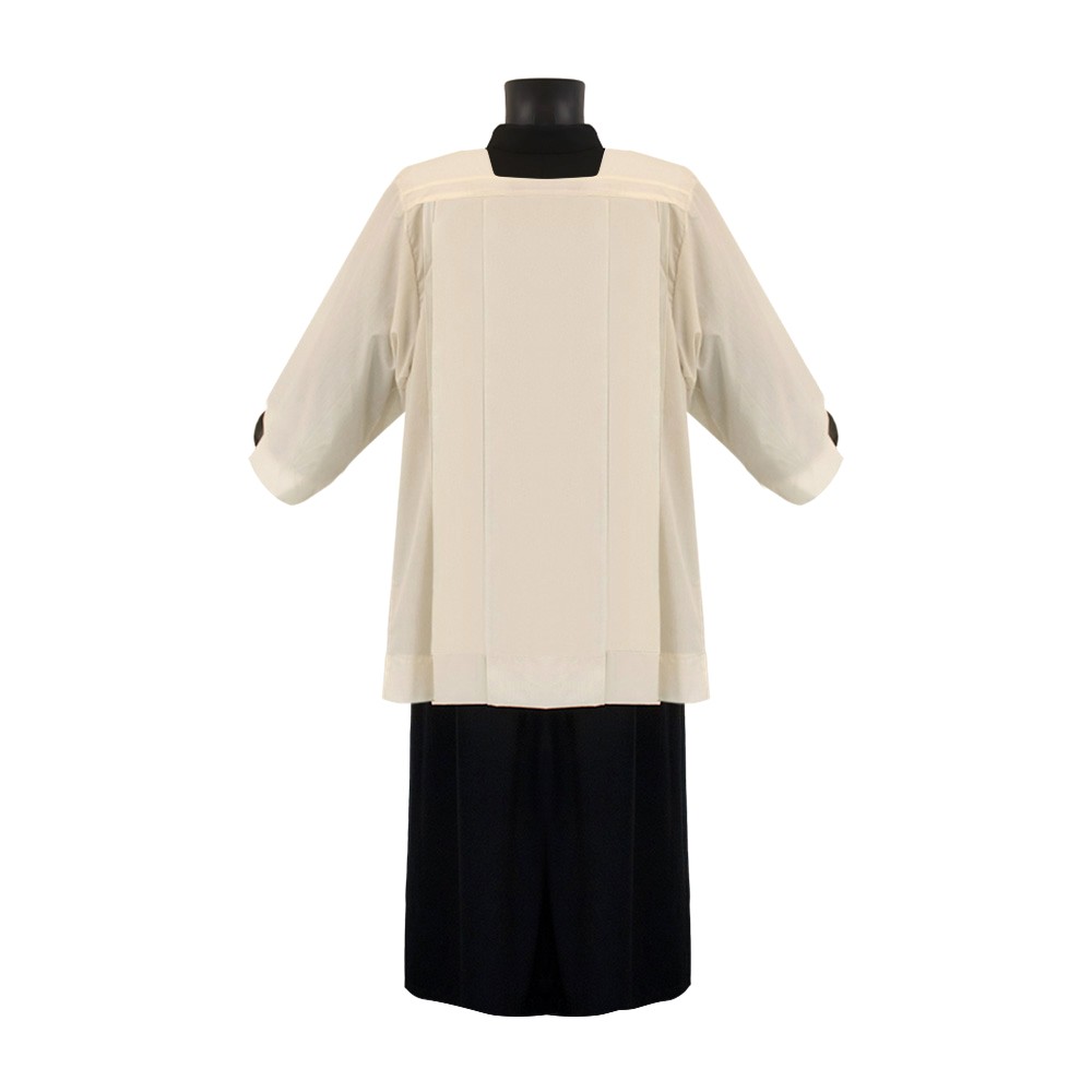 Questa veste liturgica è realizzata in leggero misto cotone, semplice senza ricamo e con quattro pieghe presenti sia sul fronte che sul retro.