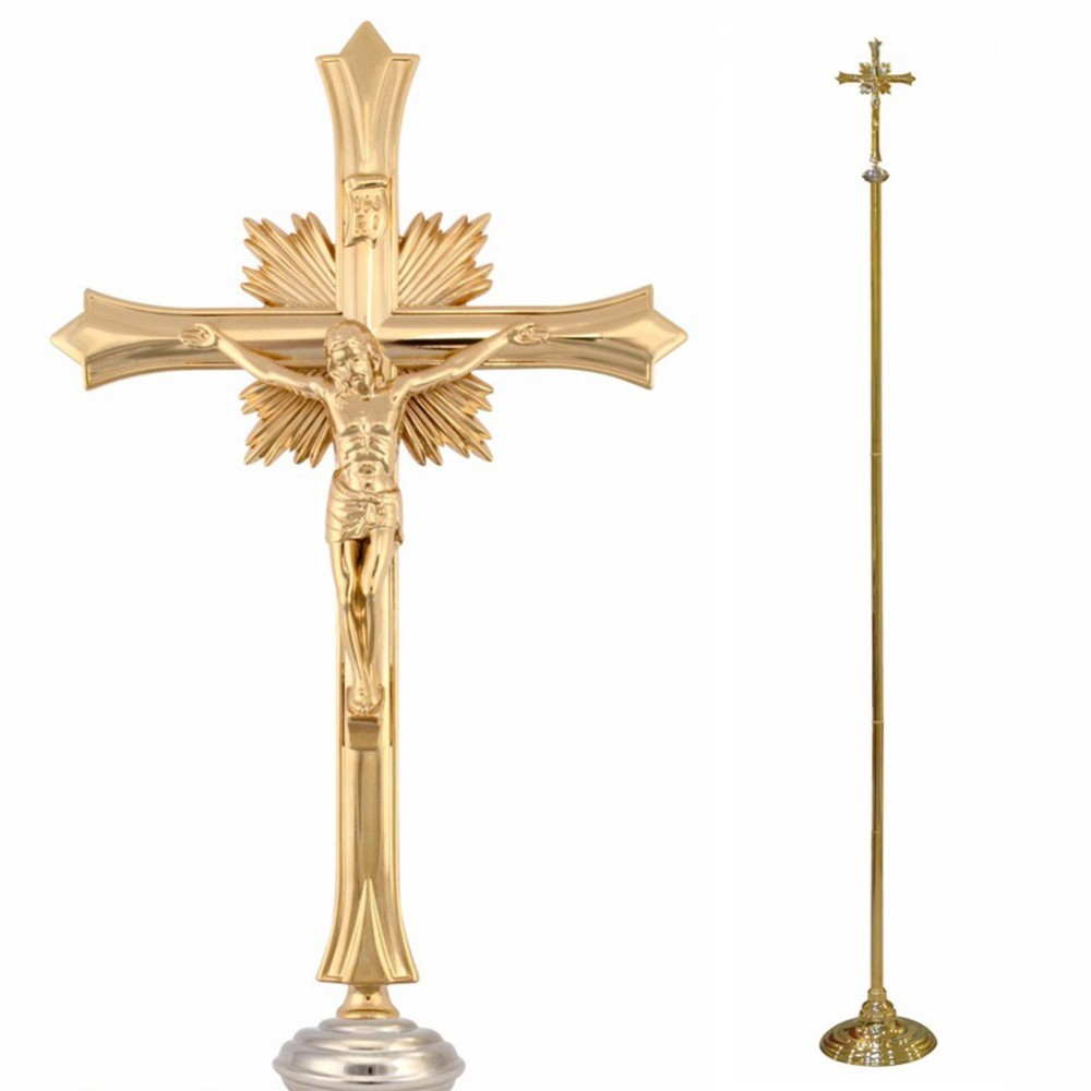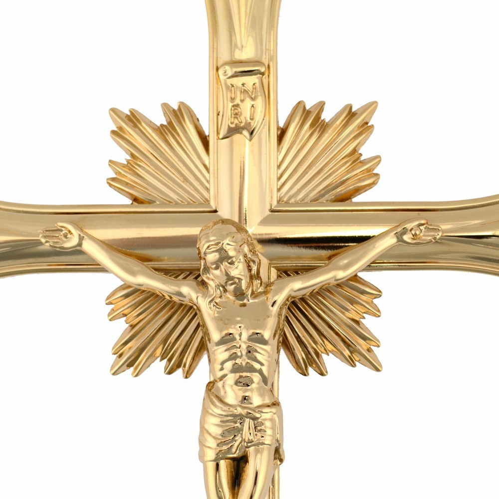 Croce Astile con base realizzata interamente in ottone dorato. Composta da 3 pezzi. Il prezzo è riferito alla croce astile completa di base. Ideale nelle processione sia all'esterno, nelle vie della città, e sia all'interno della Chiesa. Prodotto realizzato da un'azienda italiana, leader nel settore di articoli religiosi da oltre 38 anni, garantendo e offrendo una vasta gamma di prodotti di prima qualità.