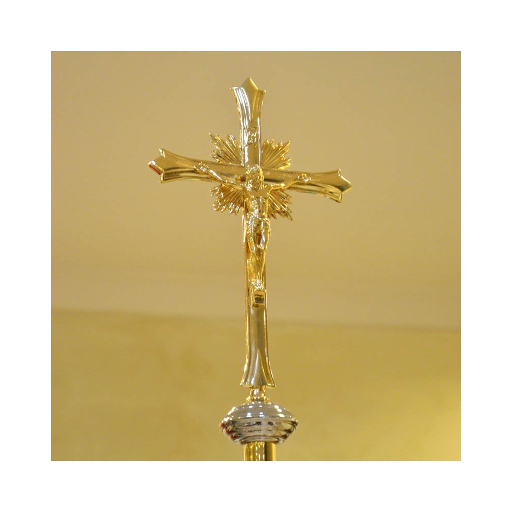 Croce astile in ottone bicolore.