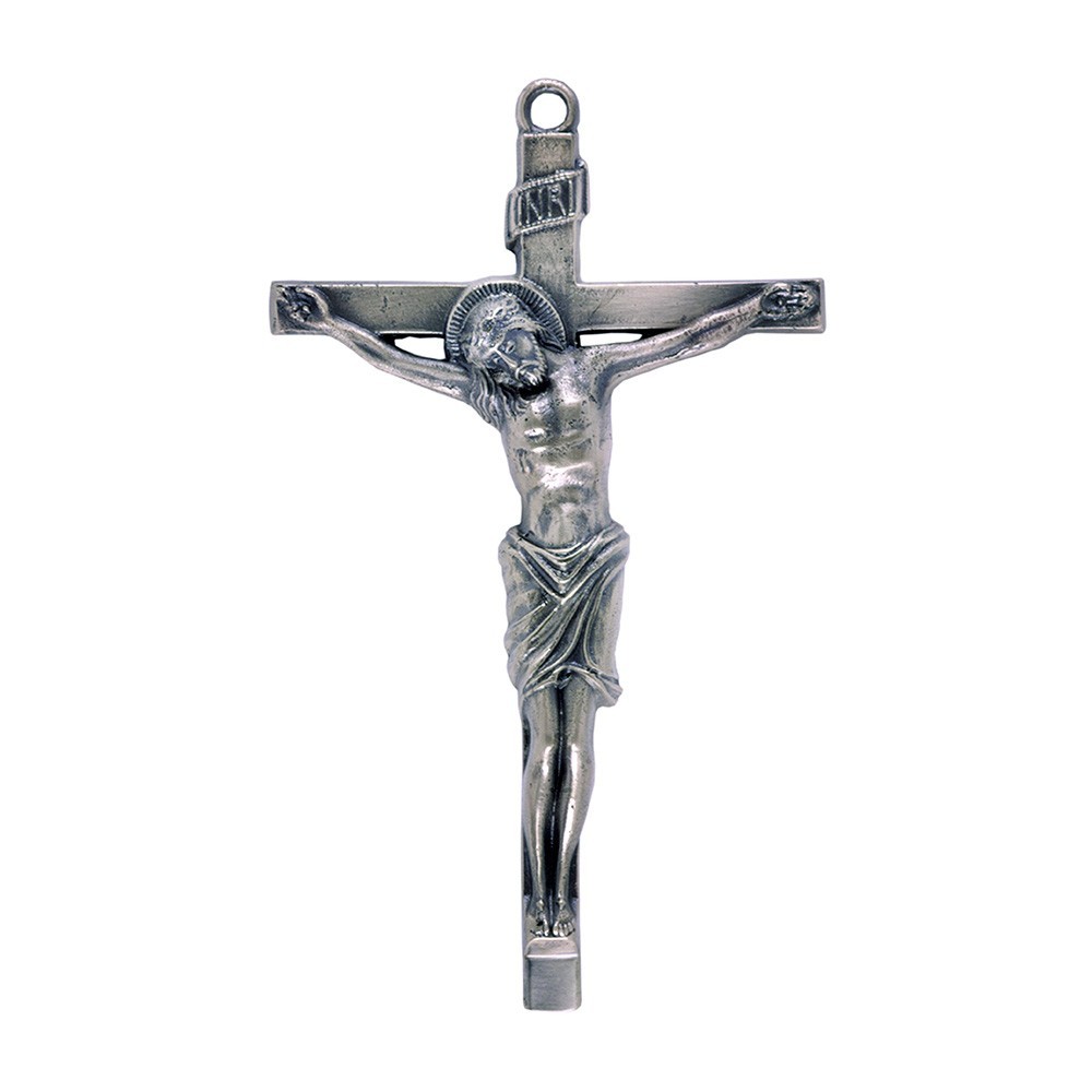 Il corpo di Gesù Cristo e la scritta INRI applicati su questo crocifiso sono in ottone argentato. Articolo di ottima qualità, eseguito interamente da un'azienda italiana.