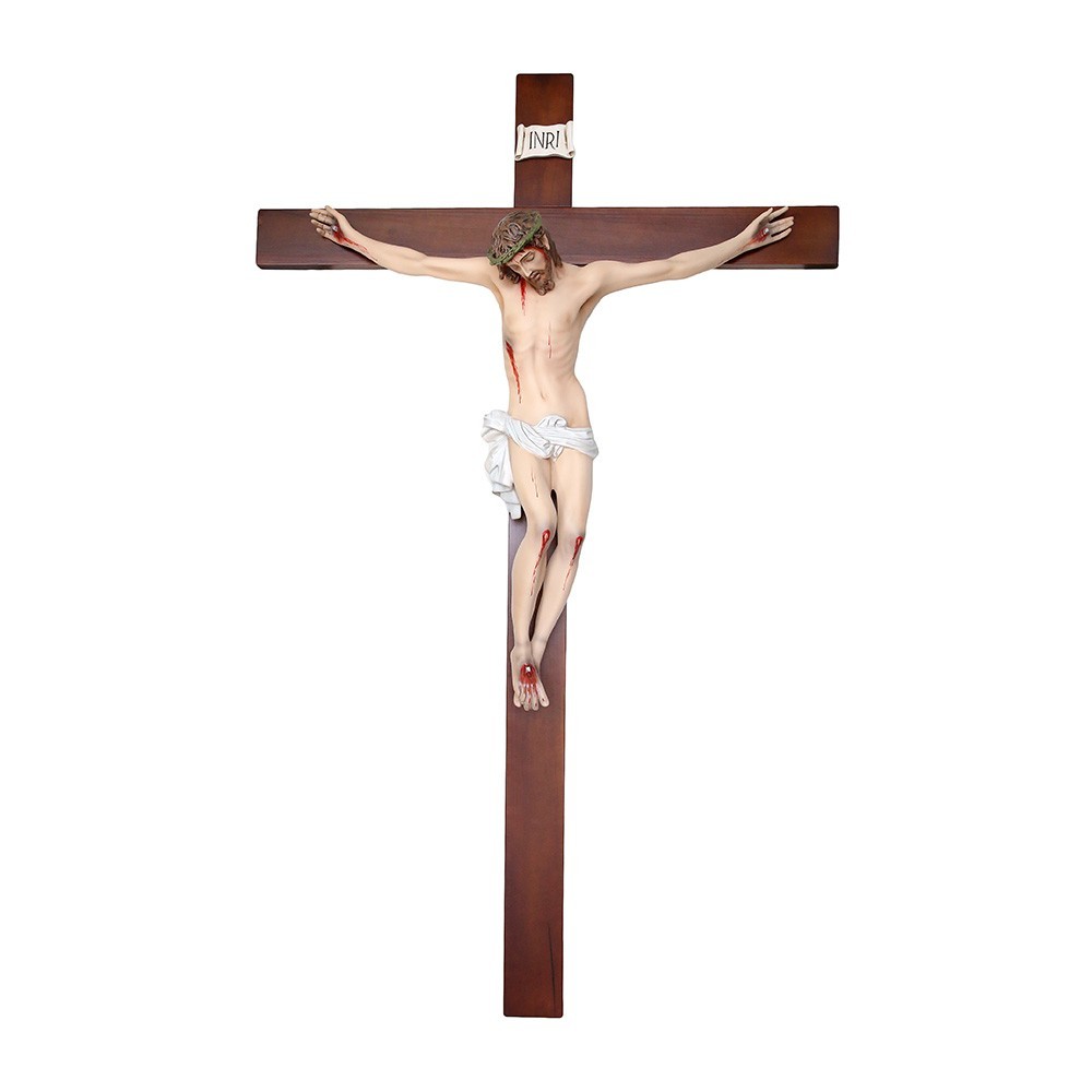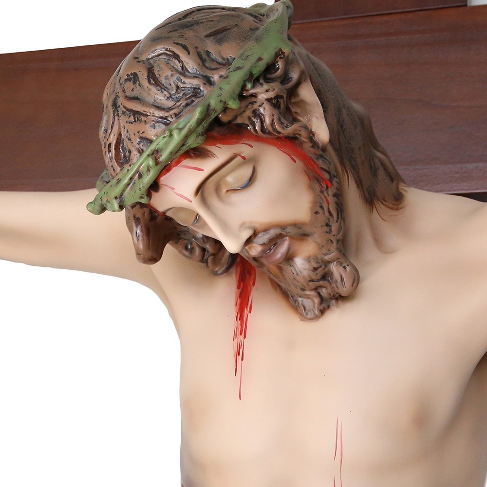 Il corpo di Cristo è realizzato interamente in vetroresina ed è applicato su croce in legno. La statua è finemente dipinta a mano, curata in ogni particolare e dettaglio. Questa bellissima statua è eseguita da un'azienda italiana, produttrice di statue sacre, in gesso, resina e vetroresina da diversi anni.