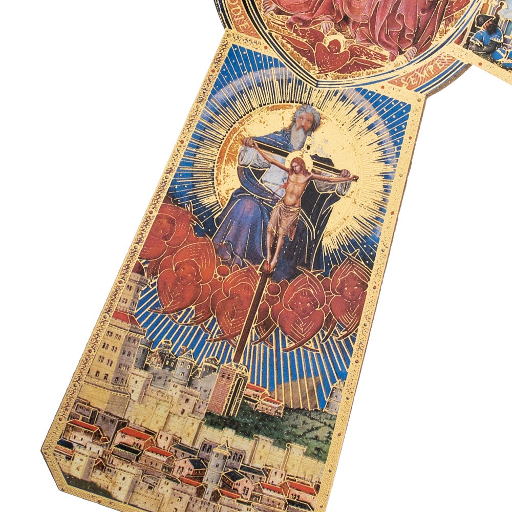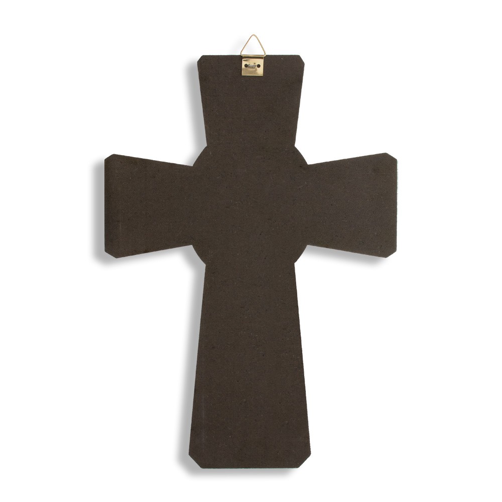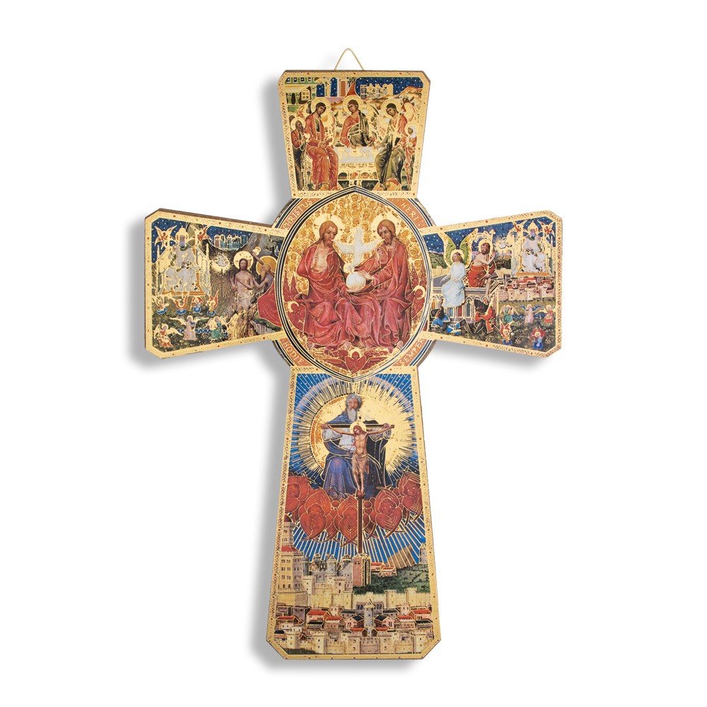 Croce in legno MDF con stampa raffigurante la Santissima Trinità.