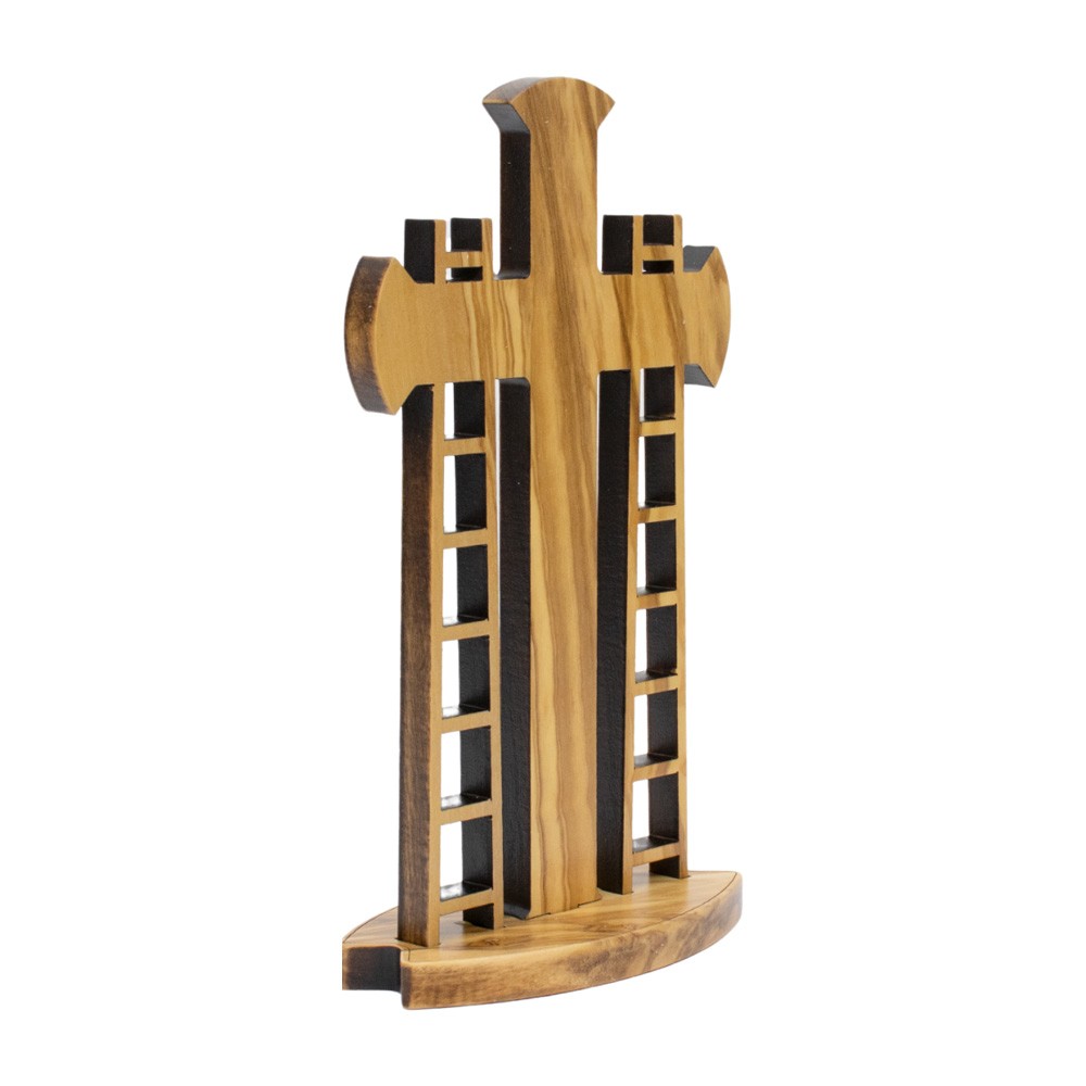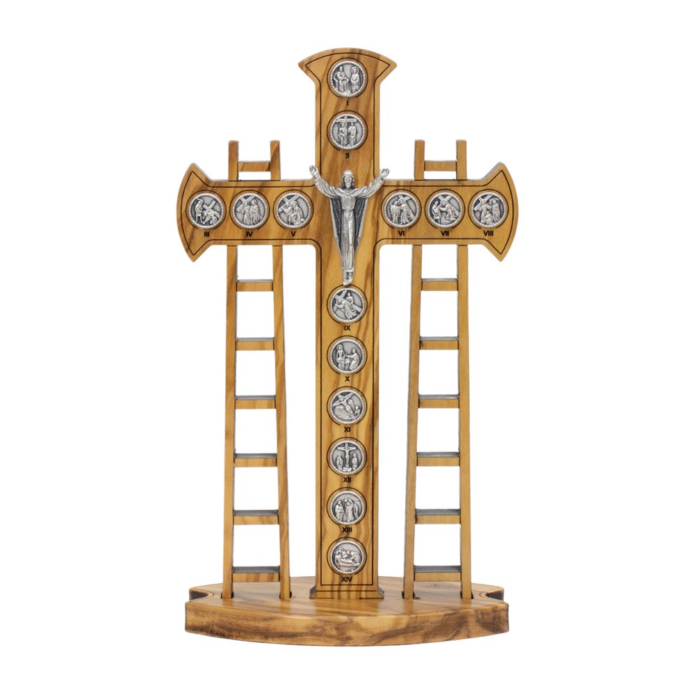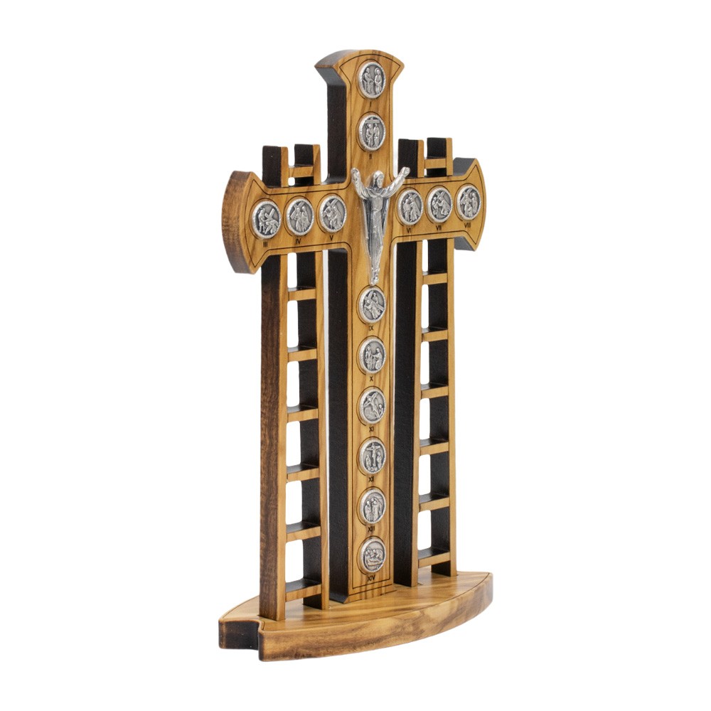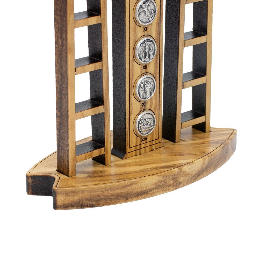 Crocifisso con Via Crucis in legno con base d'appoggio.