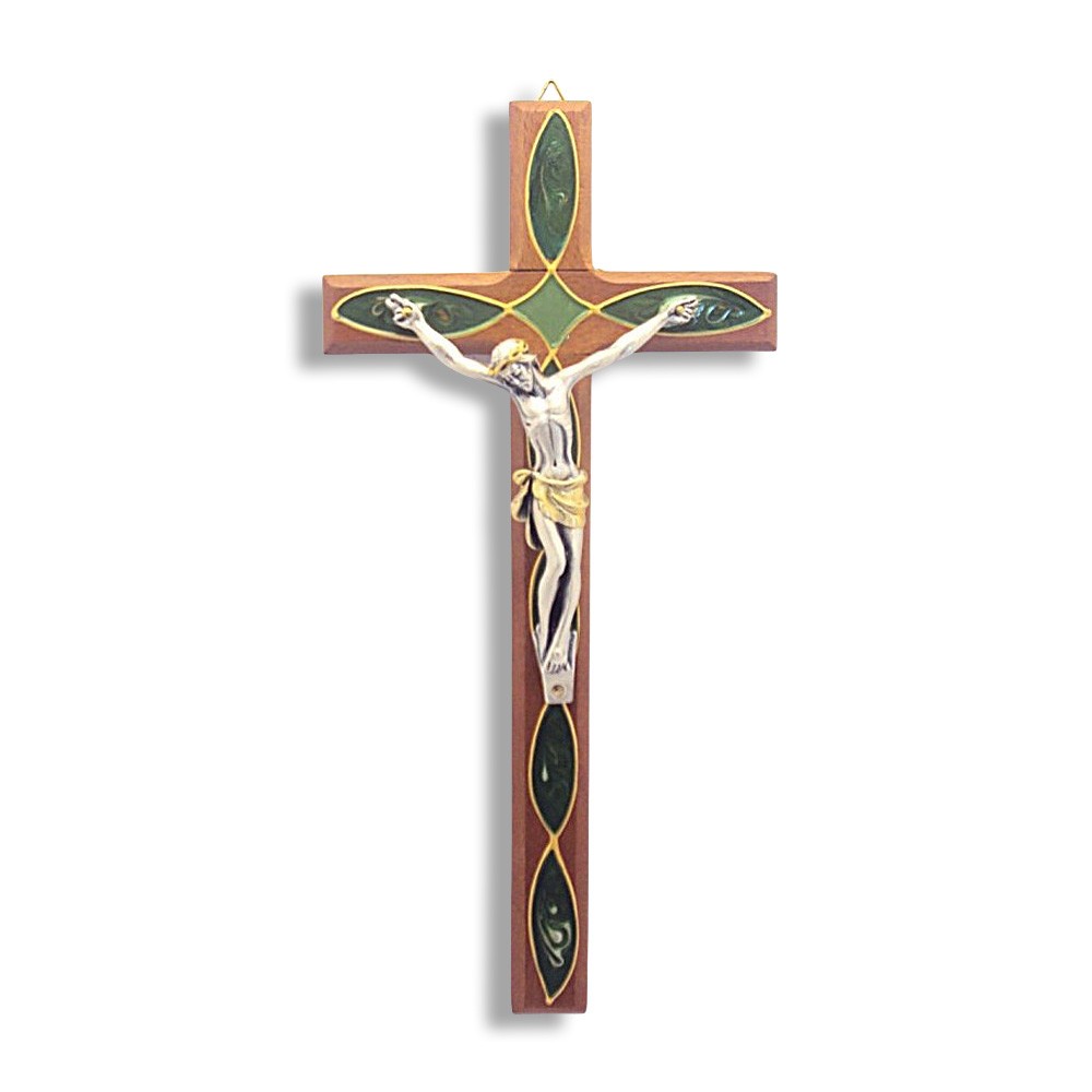 Elegante e raffinata, la croce è interamente dipinta a mano con colori smalto. Cristo bagno argento. Scatolata. Made in Italy.