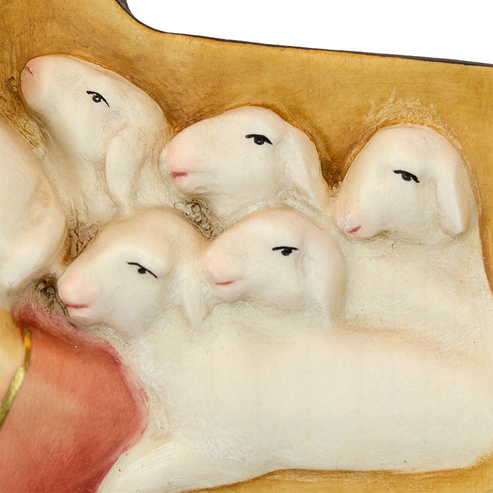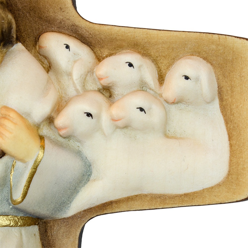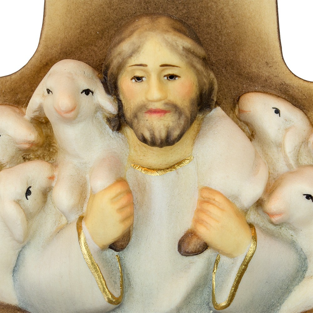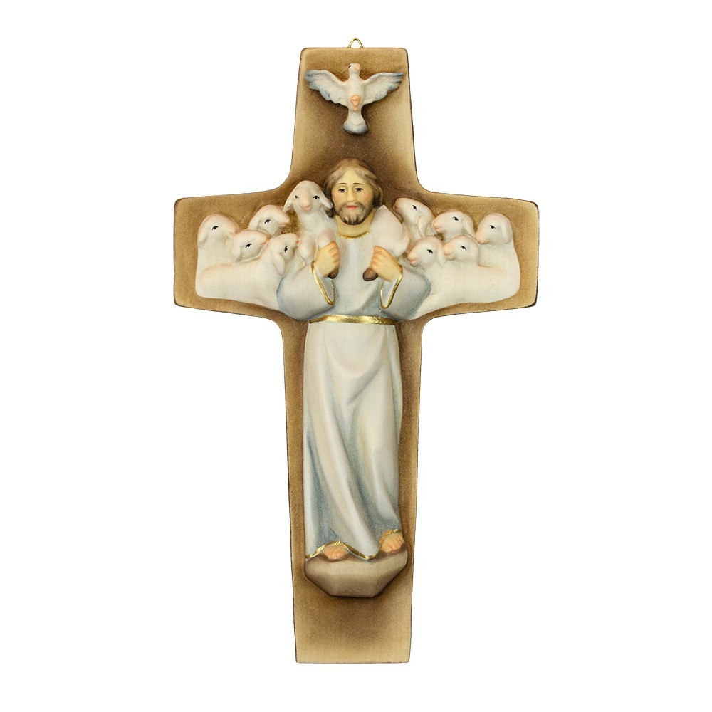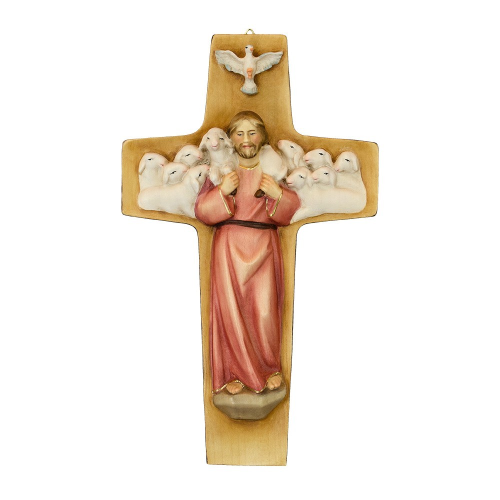 Gesù Buon Pastore si presenta con tunica bianca o rossa mentre la croce è disponibile nelle seguenti misure: