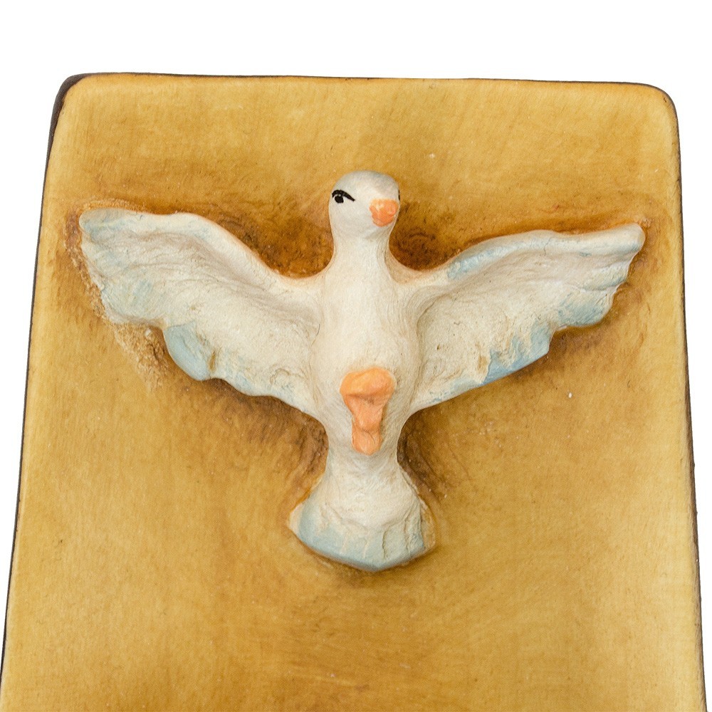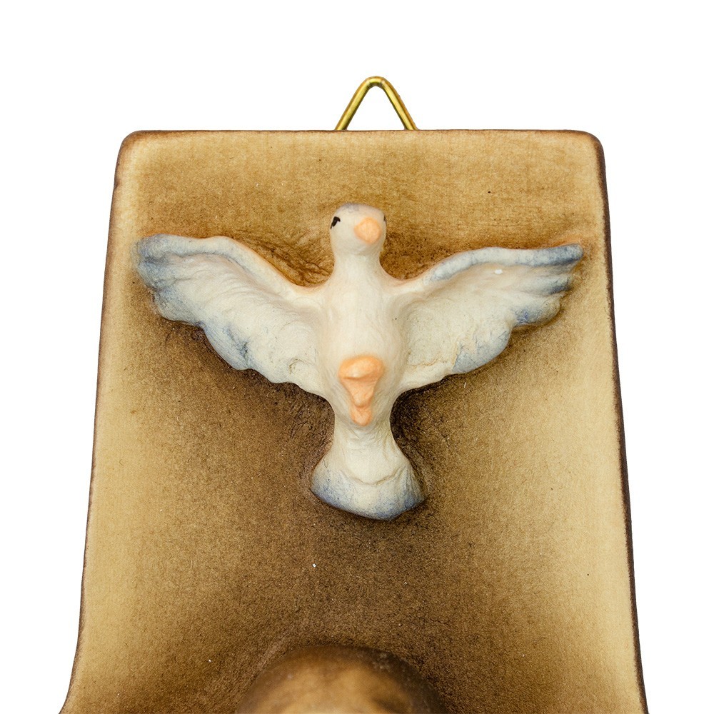 Crocifisso da parete in resina bianca con soggetto Sacra Famiglia.