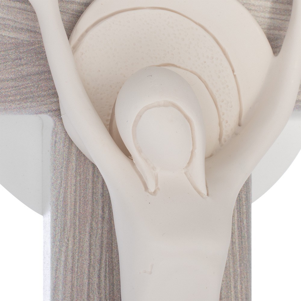 Crocifisso da parete in resina bianca con soggetto Sacra Famiglia.
